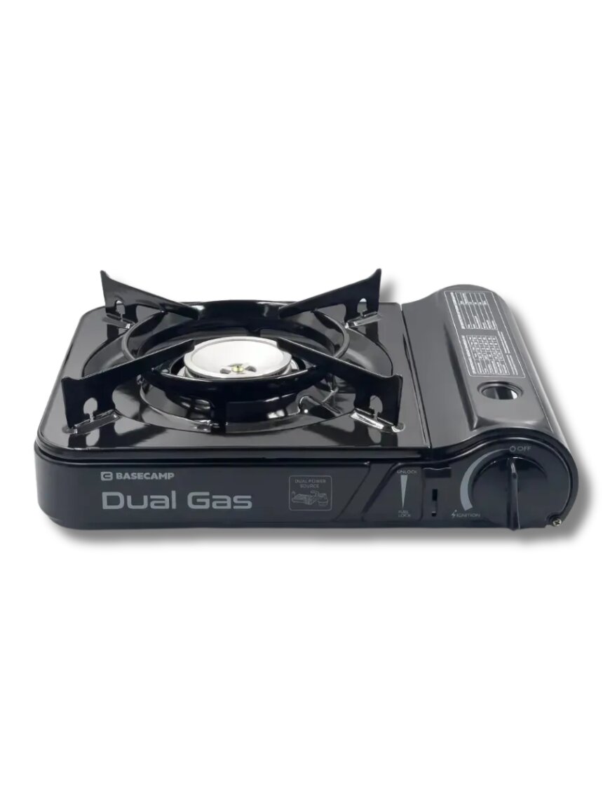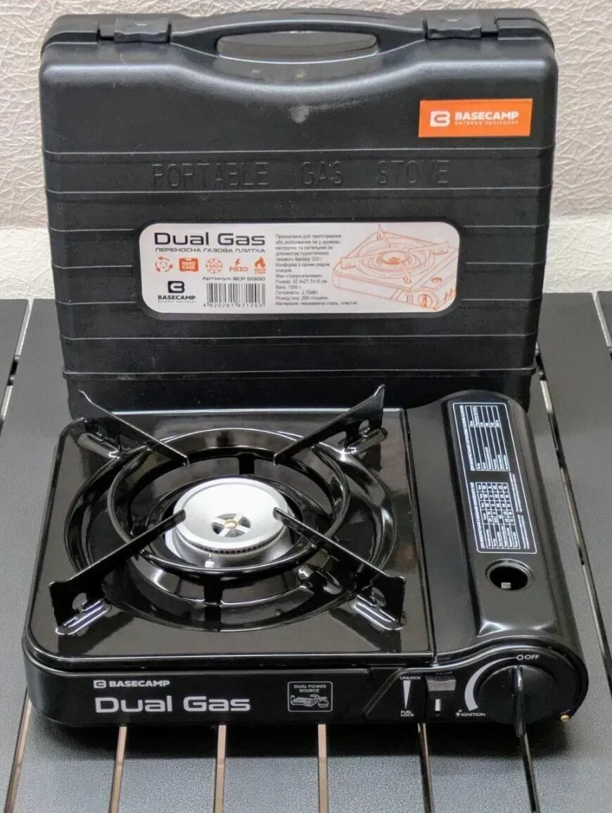 Переносна газова плитка від українського виробника Basecamp призначена для приготування або розігріву їжі в гуртках, каструлях та сковородах за допомогою туристичного газового картриджа 220 г або побутового балона. Має п'єзо підпал та конфорку з одним рядом отворів.