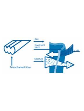 CoolMax Hexachannel: 91% polyester, 9% elastan |