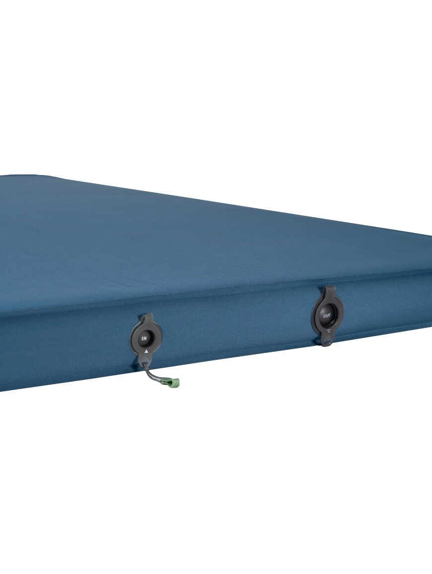 Подвійний туристичний килимок, що самонадувається, ідеально підходить для кемпінгу, базового табору або подорожей на автомобілі, пропонуючи велику і комфортну сплячу поверхню для двох або як просторе місце для друга. Він має спеціальну 3D-конструкцію, яка створює максимально широке місце для сну без звуження краями, підвищуючи комфорт під час відпочинку на природі. Товщина 7.5 см забезпечує відмінну ізоляцію від холодної землі та підтримку тіла під час сну. Поверхня виготовлена з переробленого поліестеру 75D, що приємно на дотик і довговічна в експлуатації. Килимок самонадувається, а два плоскі клапани полегшують накачування та спуск повітря, а також в комплект входить великий чохол для зручного пакування. Завдяки високому значенню R-value (близько 9) та товщині піни він добре зберігає тепло навіть у холодні ночі, роблячи його придатним для використання у прохолодну та холодну погоду до -45 °C.