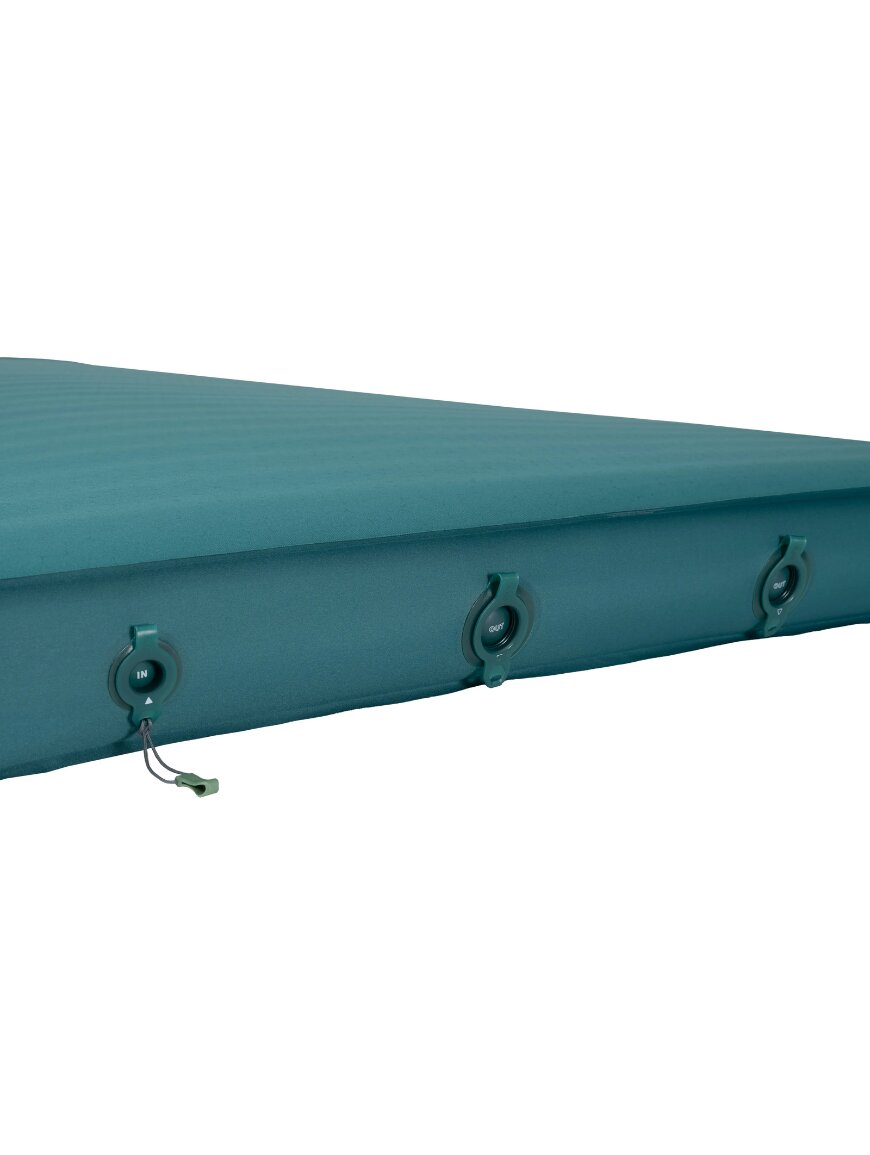 Двомісна версія популярного килимка від Exped. Його товщина і теплота забезпечують домашній затишок далеко від дому. Килимок повністю покриває площу дна двомісного намету. Найкращий вибір для кемпінгу, базового табору чи сплаву. Підійде для організації спального місця протягом всього року в кемпінгу, під час подорожей та походів. Його температурних показників достатньо для того, аби ночувати у сильний мороз. Зовнішня тканина у верхній частині килимка є достатньо міцною та приємною на дотик, адже виготовлена з поліестеру з показником 50 деньє. А для того, щоб надути килимок достатньо дістати його з чохла, розстелити, відкрити клапан і через декілька хвилин килимок самостійно набуде потрібної форми