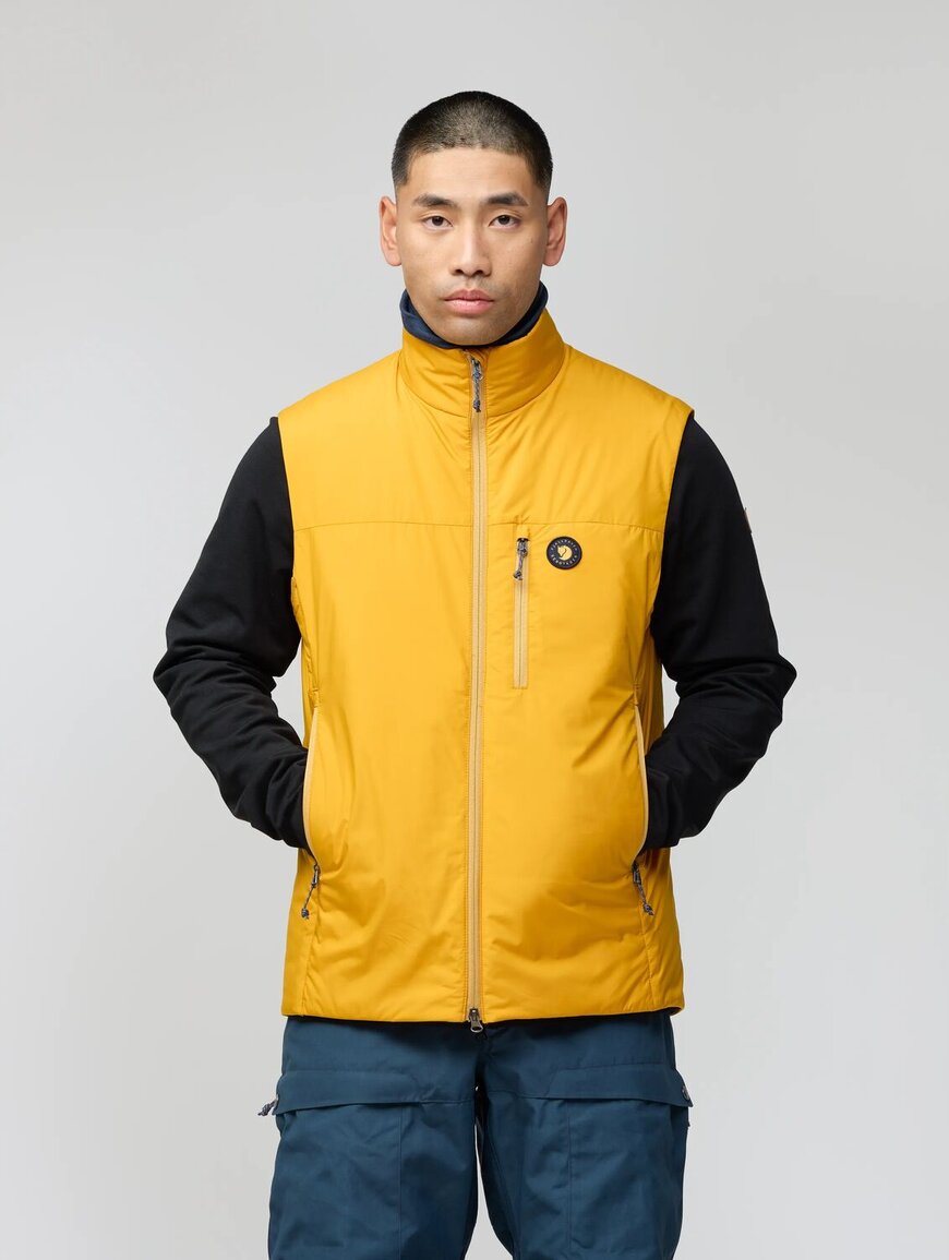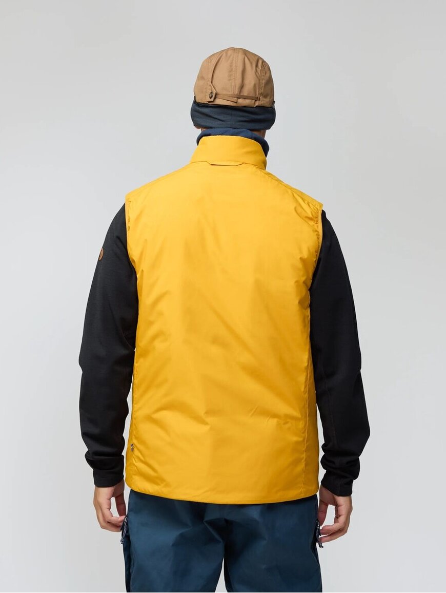 FJALLRAVEN Bergtagen 60 lnsulation vest М - легка чоловіча утеплена жилетка для гірських маршрутів, походів і активного відпочинку. Вона забезпечує чудовий баланс між теплом і компактністю, не обмежує рухів і зручно лягає під куртку або поверх флісу. Bergtagen 60 Insulation Vest M стане в пригоді на холодному перевалі, під час відпочинку на стоянці або в мінливу погоду в горах.