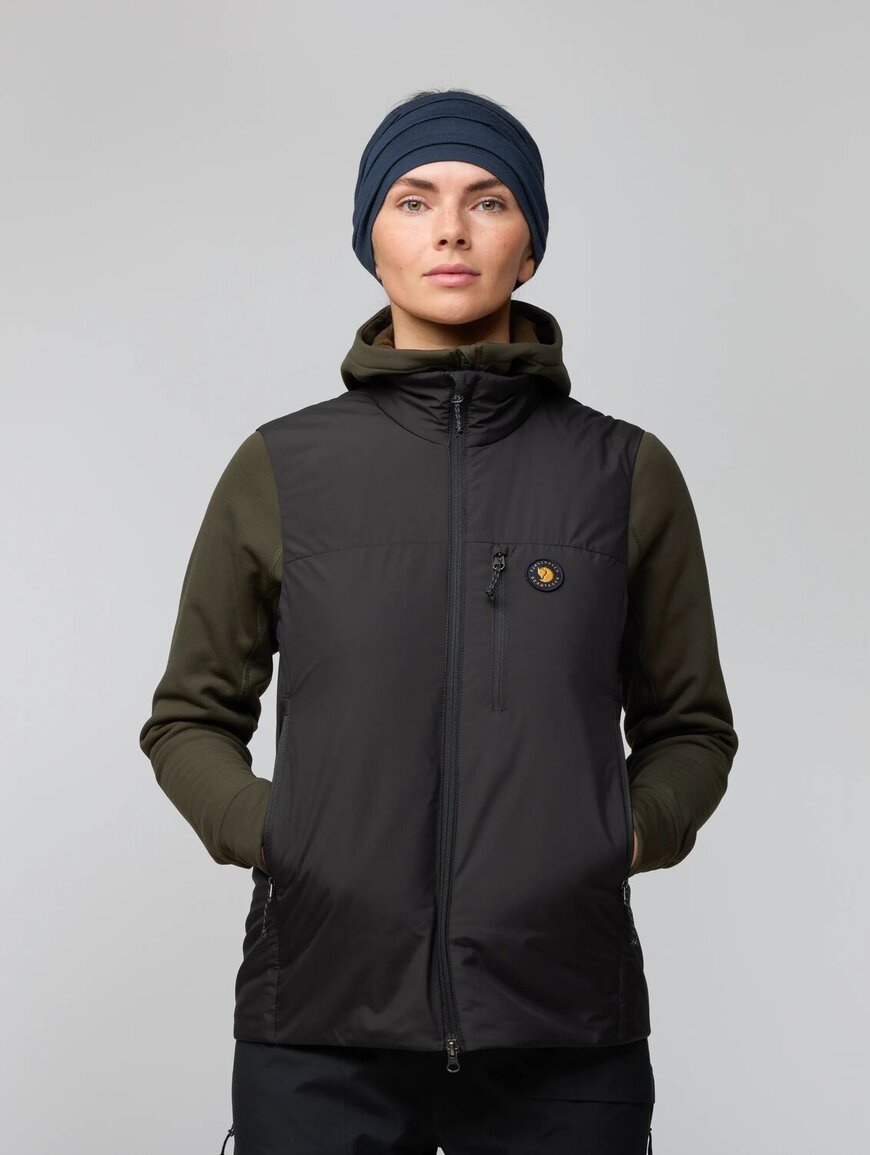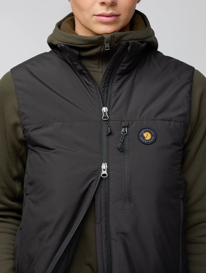 FJALLRAVEN Bergtagen 60 lnsulation vest W - жіноча утеплена жилетка для гірських мандрівок і холодної погоди. Вона створена як легкий, але ефективний проміжний шар, який зберігає тепло навіть у вологих умовах. Bergtagen 60 Insulation Vest W стане у пригоді під час сходжень, зимових походів або просто активного відпочинку на свіжому повітрі, коли потрібен додатковий комфорт і тепло без обмеження рухів.