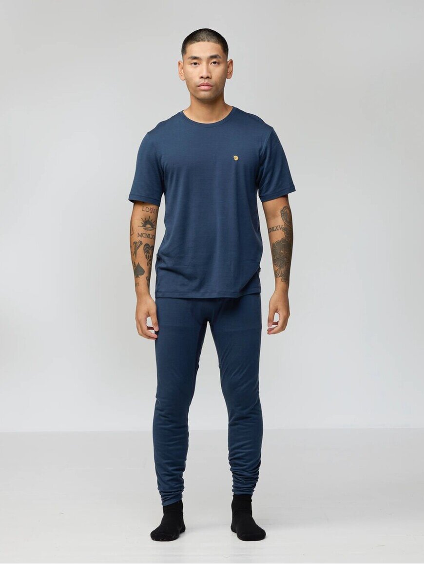 FJALLRAVEN Bergtagen Merino 190 LJ М - це теплі чоловічі термоштани для гірських походів, альпінізму та зимових подорожей. Вони створені як базовий шар, який зберігає тепло, відводить вологу та забезпечує комфорт під час активного руху. М’який матеріал приємно прилягає до тіла, не сковує рухів і підтримує стабільну температуру навіть у холодну погоду.