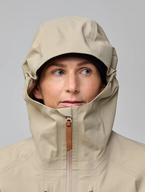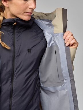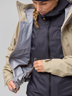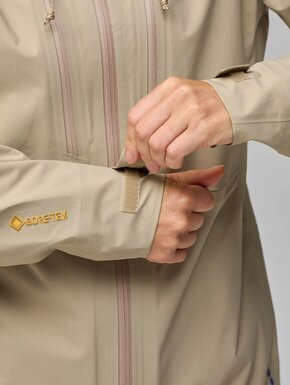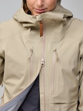 Продуманий крій забезпечує точну посадку й свободу рухів. Регульований капюшон добре захищає від вітру та дощу, не обмежуючи огляд. Дві великі вертикальні нагрудні кишені залишаються доступними навіть у страхувальній системі чи з рюкзаком, а двостороння блискавка та вентиляційні отвори під руками дають змогу легко регулювати теплообмін. Куртка розрахована на тривале використання, тому її легко доглядати та, за потреби, відновлювати.