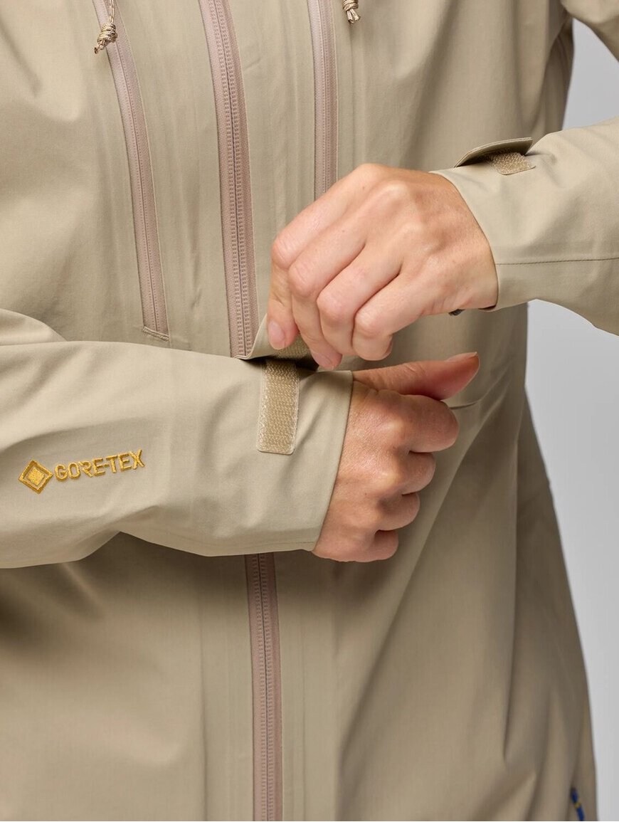 Куртка FJALLRAVEN Keb GTX Jacket W створена для трекінгу та подорожей у горах, де погода може змінюватися щогодини. Вона надійно захищає від дощу й вітру, забезпечуючи свободу рухів навіть на складних ділянках маршруту.