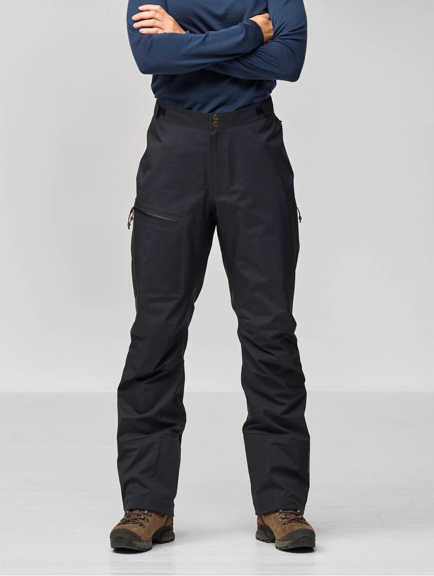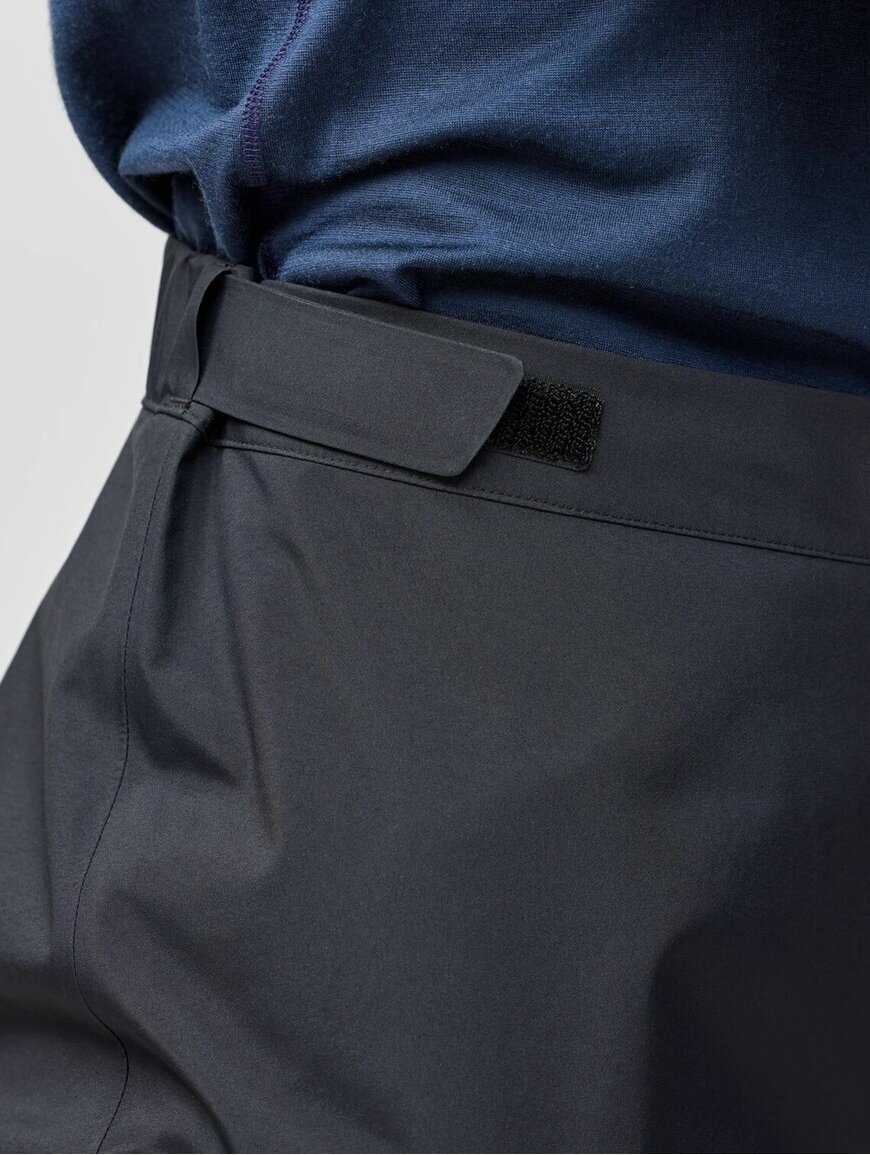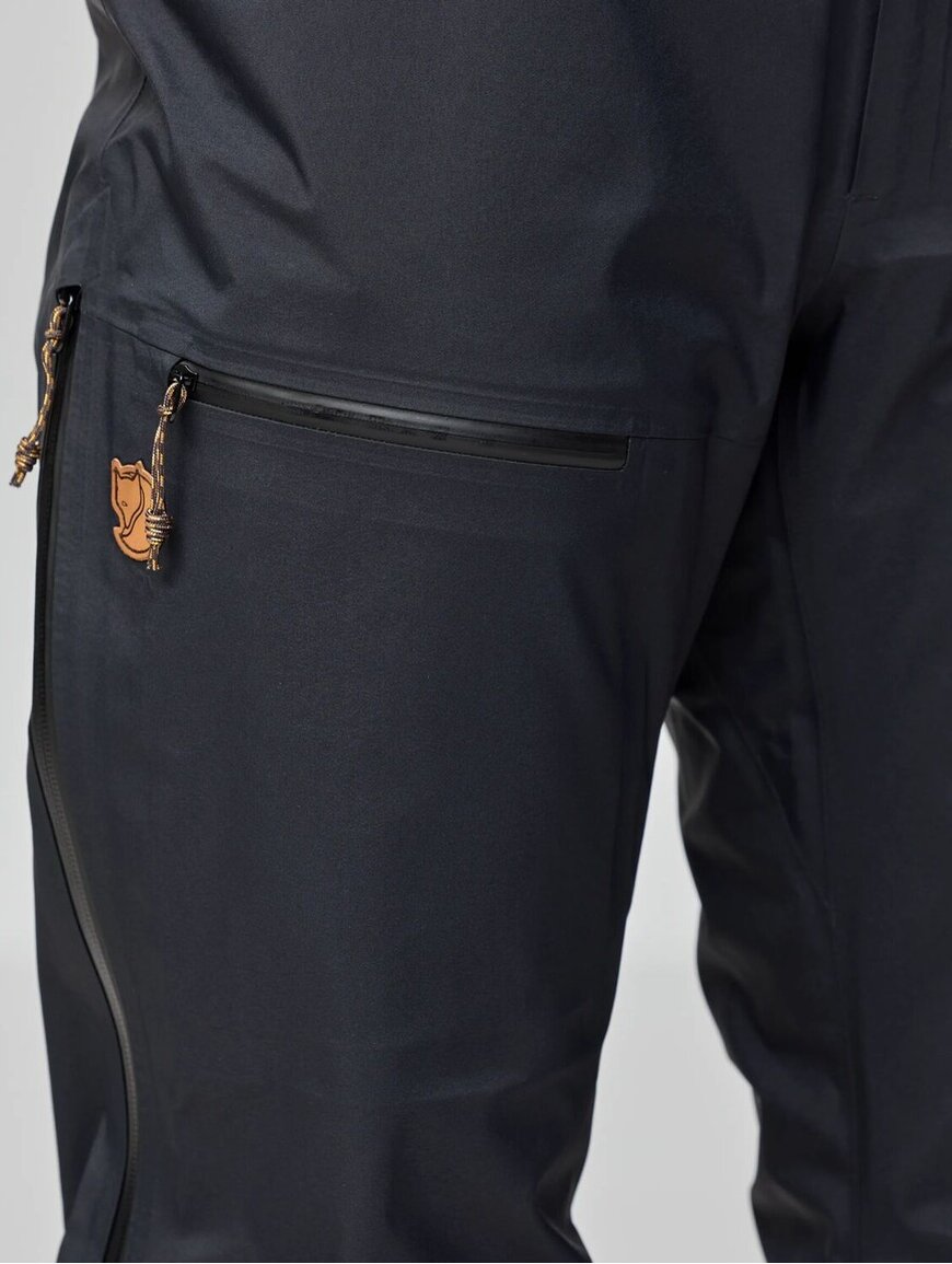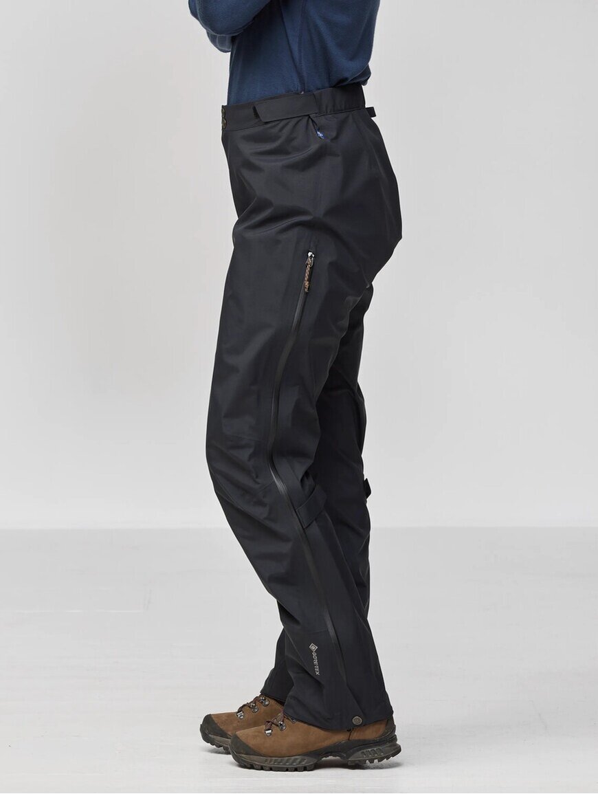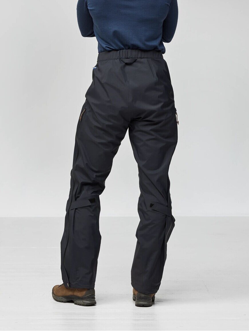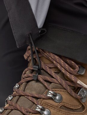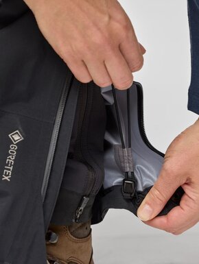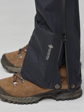 Продуманий крій сприяє вільному руху під час ходьби чи підйому. Нижня частина штанин посилена для додаткового захисту від зношування, має регульовану ширину, гачки для фіксації на черевиках і петлі для кріплення підп’яткового ремінця. Подовжені двосторонні блискавки з водостійким покриттям уздовж боків полегшують надягання поверх взуття та дають змогу швидко відрегулювати температуру. Штани розраховані на багаторічне використання, тому їх легко доглядати та, за потреби, ремонтувати.