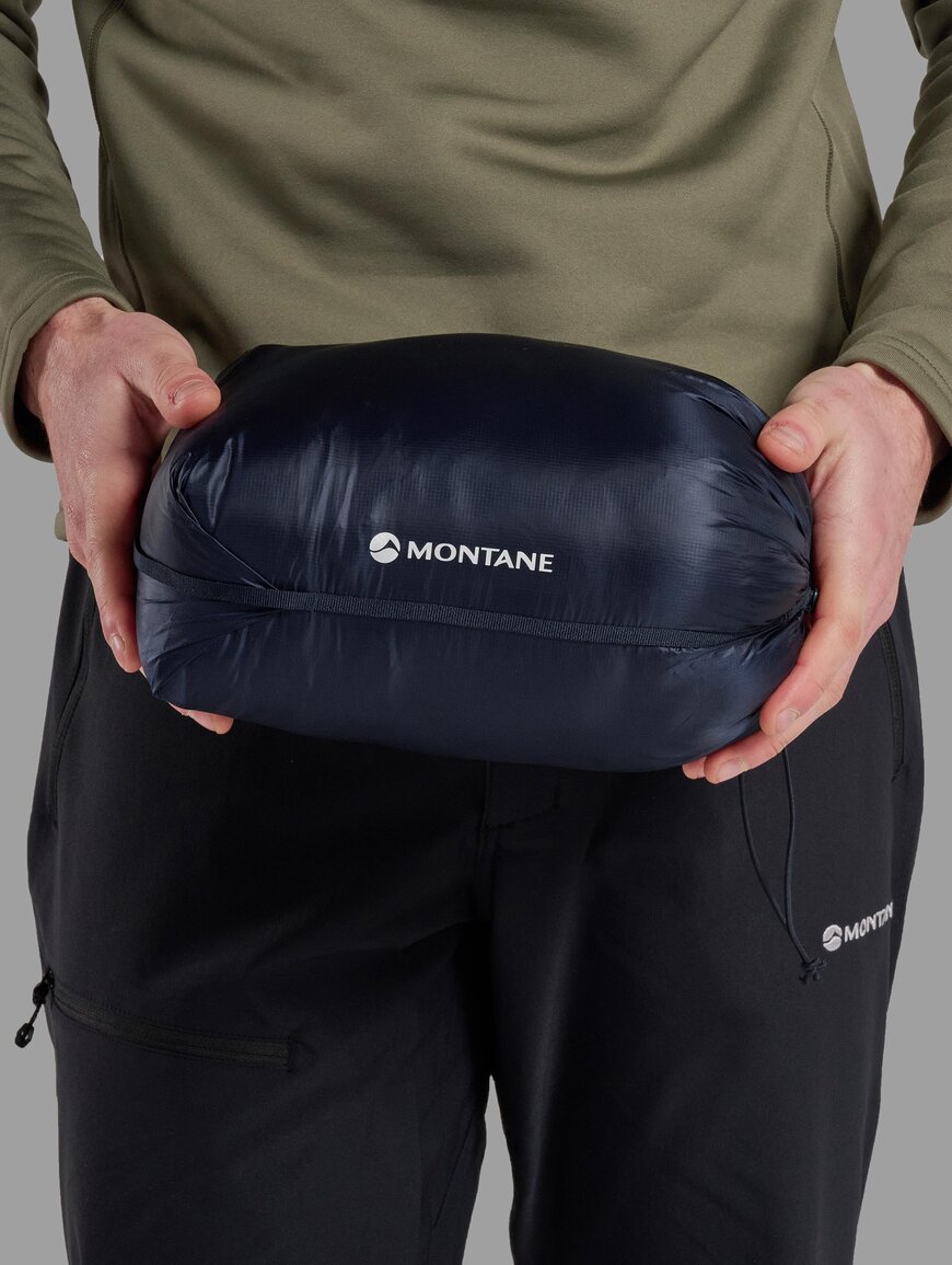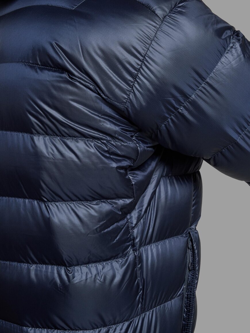 Зовнішній матеріал Pertex® Quantum виготовлений із переробленого нейлону. Його щільне плетення надійно утримує пух і сприяє ефективному збереженню тепла. Матеріал легкий, м’який і має водовідштовхувальне покриття, що захищає від легких опадів. Наповнювач - гусиний пух ExpeDRY 800 fill power, який швидко сохне та зберігає тепло навіть у вологому середовищі. Під руками розміщені вставки з еластичного синтетичного утеплювача, що зберігає тепло навіть при намоканні.
