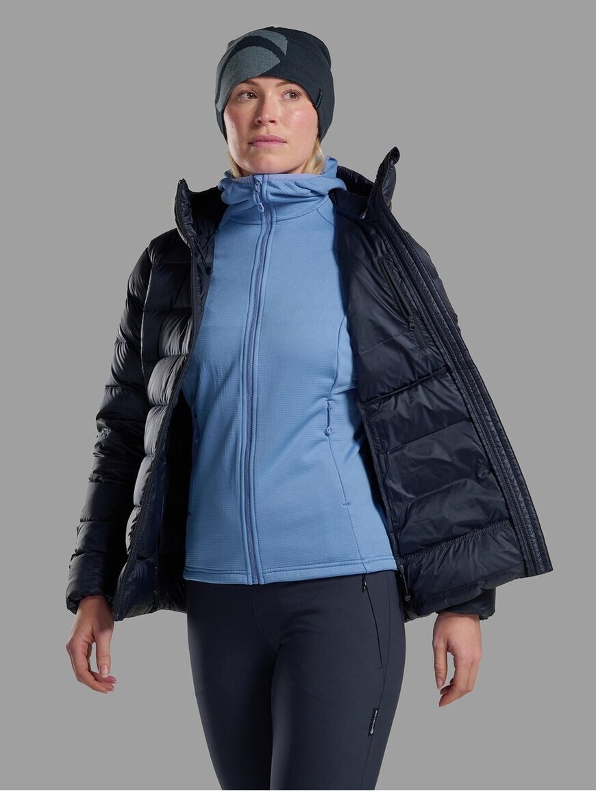 Montane Anti-Freeze XT Hoodie W - жіноча пухова куртка для суворих погодних умов. Вона забезпечує надійний захист і тепло під час зимових походів, сходжень або експедицій. Ця модель легка та надзвичайно тепла, тому підходить для ситуацій, коли кожен грам спорядження має значення.