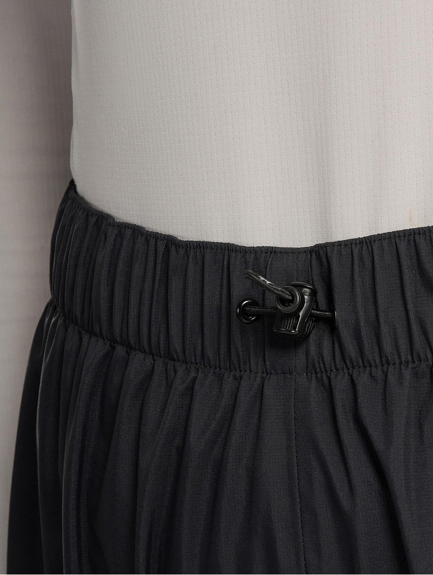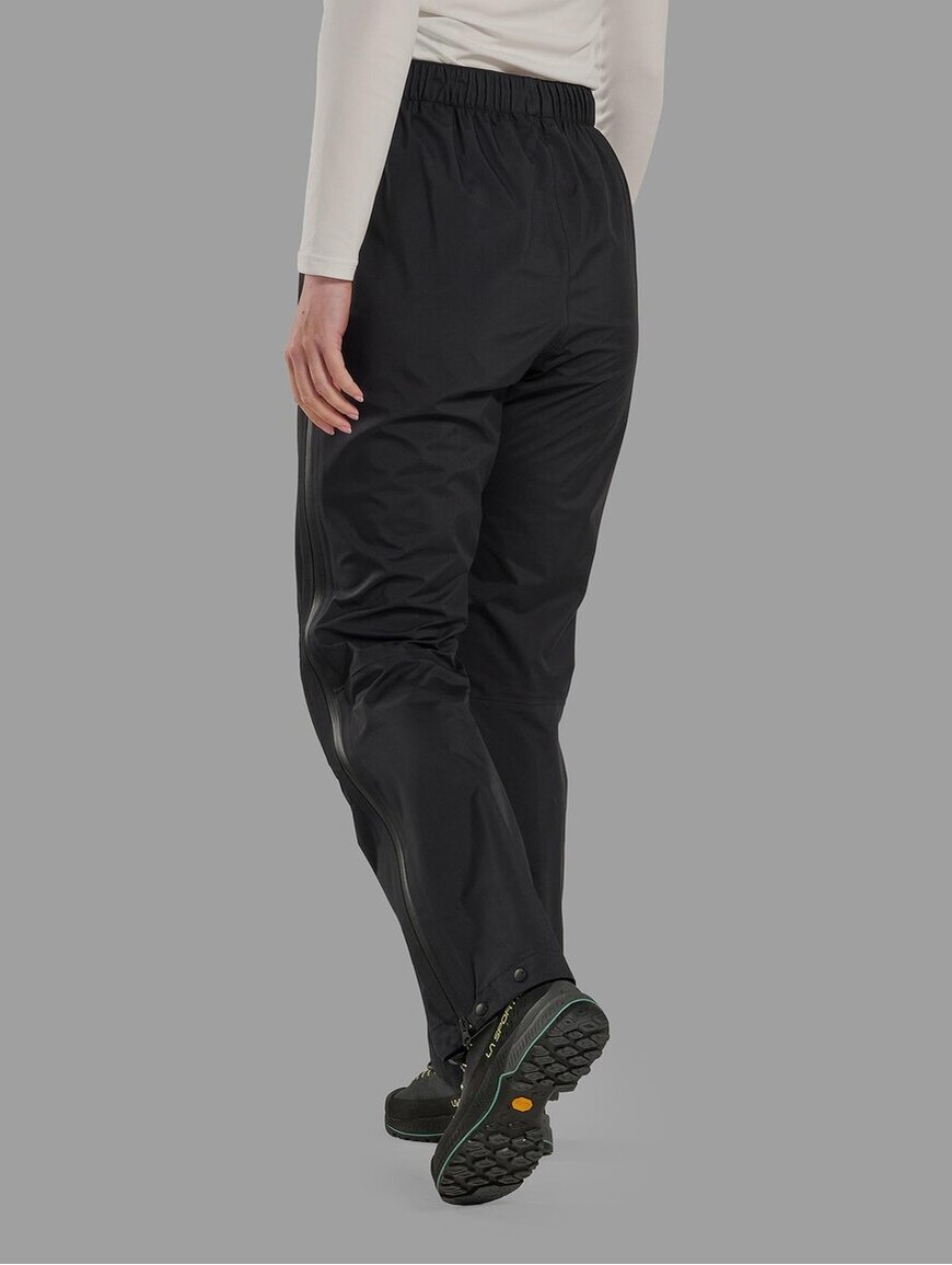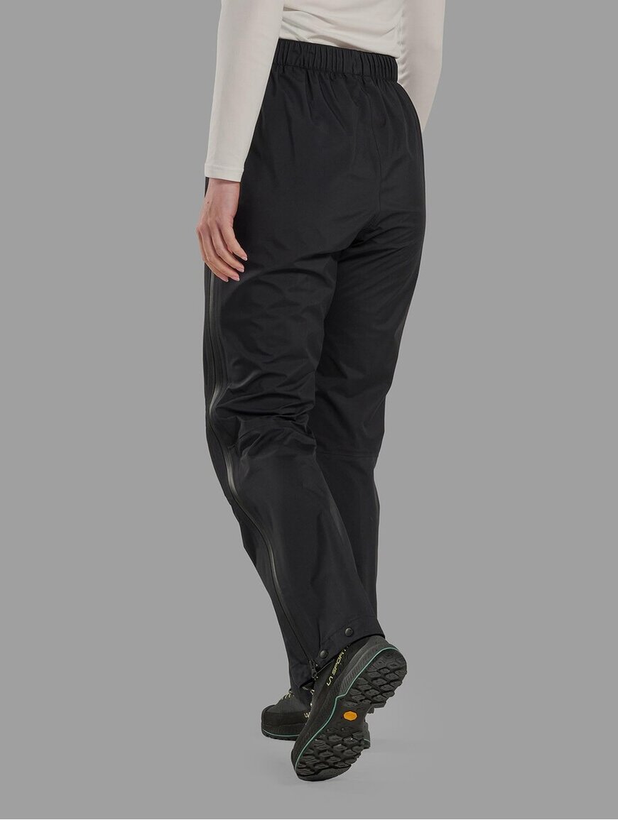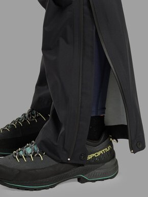 Штани мають еластичний пояс з регулюванням, який забезпечує точну посадку на талії. Бокові блискавки YKK AquaGuard на ¾ довжини дозволяють швидко знімати штани або провітрювати їх під час руху. Краї штанин регулюються, щоб щільно прилягати до черевиків і не пропускати вологу. Технології Barrier та Storm Guard захищають від протікання через шви й застібки, забезпечуючи стабільний захист у дощову погоду.
