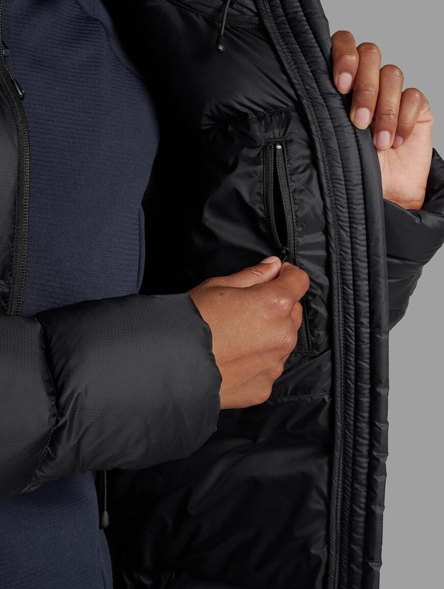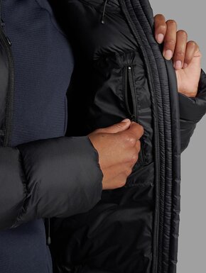 Куртка утеплена переробленим пухом RENU ExpeDRY 85/15 із наповнювальною здатністю 750 FP. Завдяки обробці ExpeDRY пух висихає швидше й утримує тепло навіть у вологому середовищі. Зовнішня тканина Pertex Quantum з нейлону 30D легка, вітронепроникна та має водовідштовхувальне покриття без PFAS. Внутрішня підкладка PEAQ Down приємна до тіла й ефективно відводить вологу.