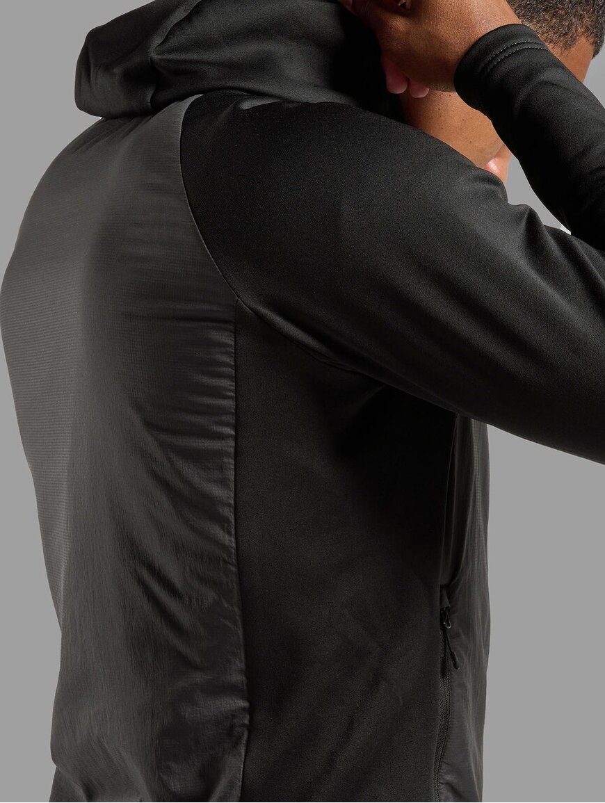 Утеплення виготовлене з переробленого поліестеру, який зберігає тепло навіть у вологих умовах і швидко висихає. Зовнішня тканина Featherlite Air із нейлону 20D легка, стійка до вітру й добре пропускає повітря, завдяки чому куртка комфортна під час інтенсивного руху. Бокові панелі та панелі під руками з Thermo Stretch Lite підвищують еластичність конструкції та покращують відведення вологи в активних зонах.