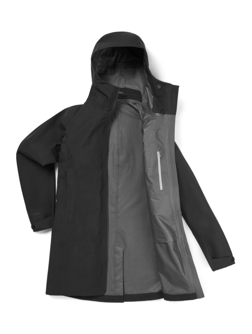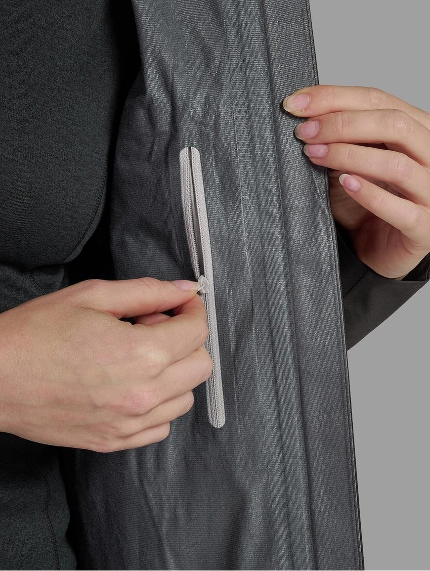 У моделі використано мембранну тканину GORE-TEX ePE Performance, яка не пропускає вологу й захищає від вітру, але водночас добре відводить надлишкове тепло. Зовнішній шар із переробленого поліестеру 75D міцний та приємний на дотик. Усередині - м’яка ворсиста підкладка, яка підвищує комфорт у прохолодну погоду.