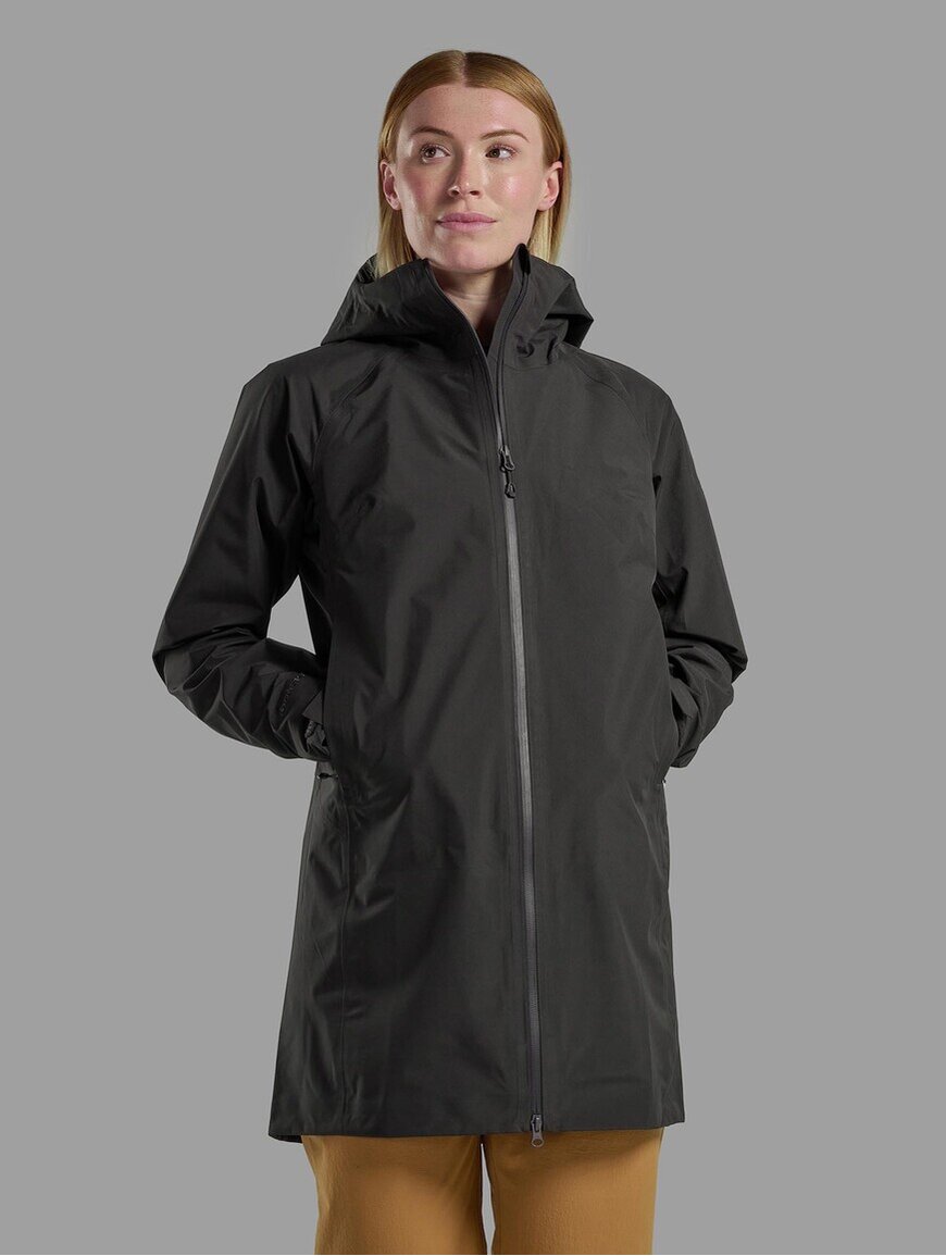 Montane Spirit Long Jacket W - довга водонепроникна куртка для дощу та вітру. Вона захищає від опадів, пропускає повітря та комфортно сидить під час руху. Подовжений крій прикриває стегна, а м’яка підкладка додає комфорту у прохолодну погоду. Куртка підходить для подорожей, міських прогулянок і повсякденного носіння в міжсезоння.