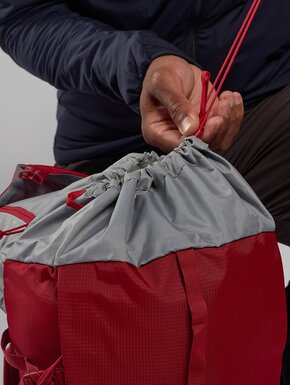 Рюкзак зроблений із міцного переробленого нейлону, який стійкий до стирання й має водовідштовхувальну обробку без PFAS. Спинка регулюється за висотою й має дихаючу 3D-пінну вставку, що допомагає зменшувати накопичення тепла. Система кріплення COVALENT утримує рюкзак близько до тіла, щоб він не хитався під час руху.