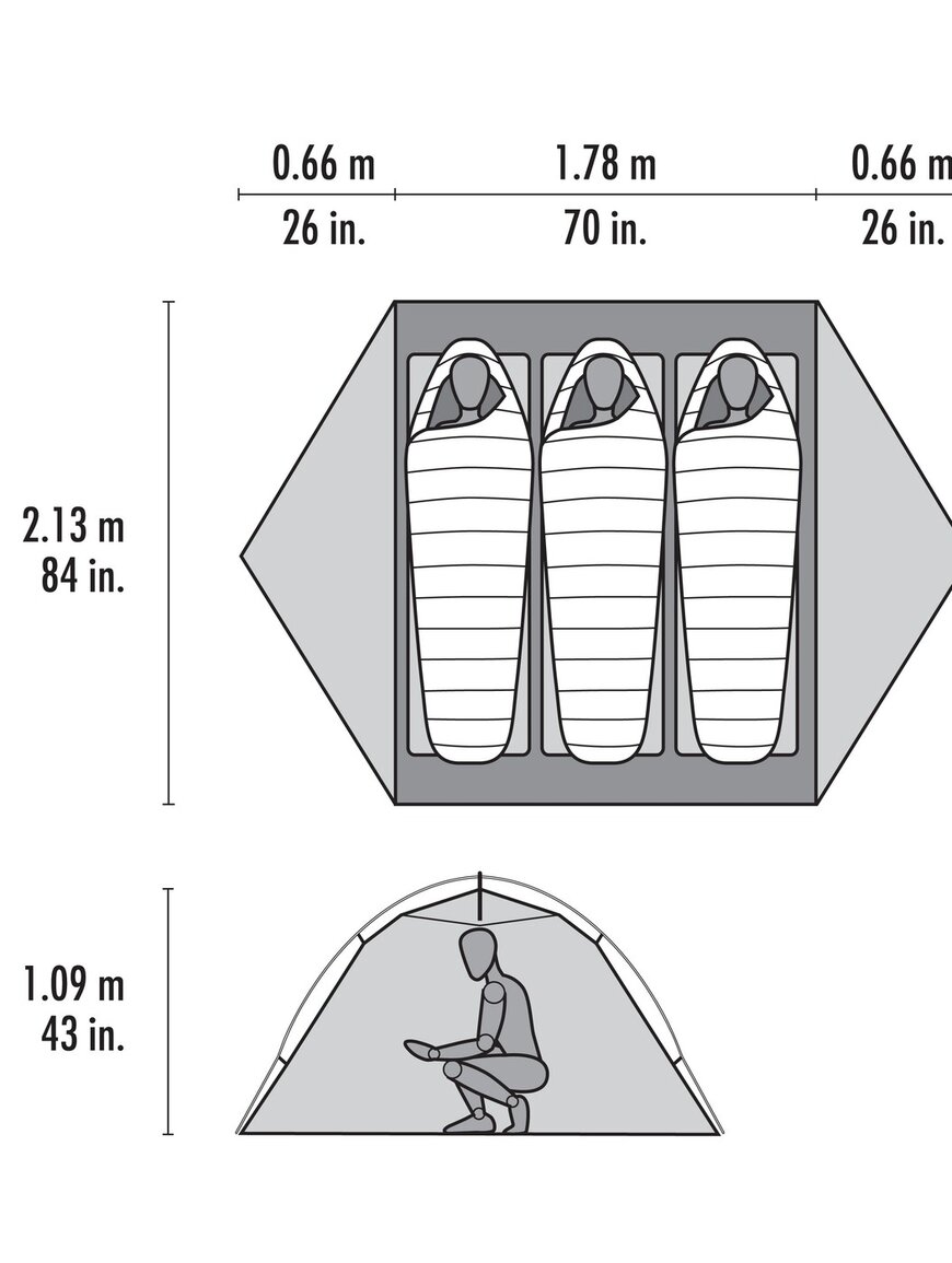 MSR Elixir 3 Tent — тримісний намет для трисезонних походів і пішого туризму. Модель має збільшений внутрішній об’єм і підходить для трьох користувачів або двох з додатковим спорядженням.