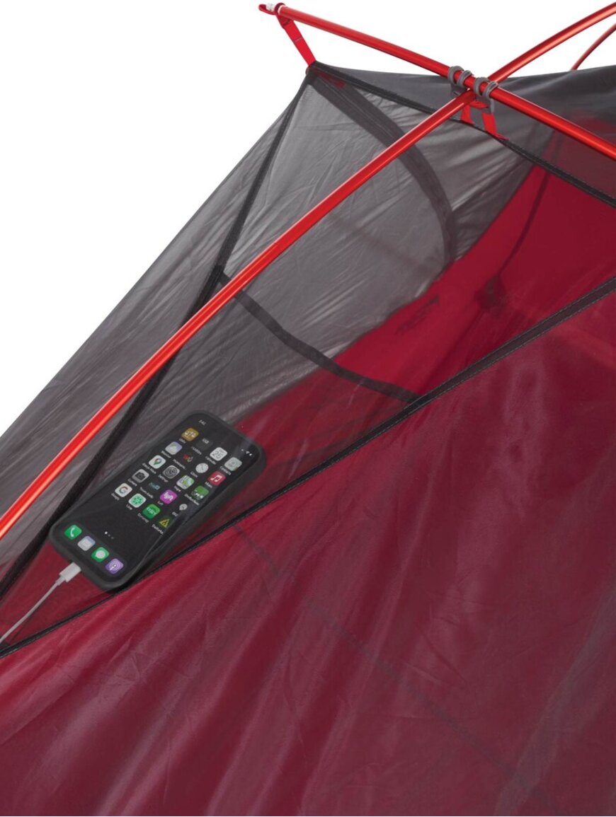 Всередині все продумано для зручності: є кишені з виходами для кабелів, що зручно для заряджання гаджетів, та верхні полиці для дрібних речей. Завдяки системі дуг на єдиному хабі намет легко встановити самотужки за лічені хвилини. У складеному вигляді намет займає мінімум місця, суттєво економлячи об'єм у наплічнику.