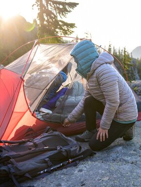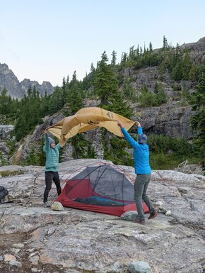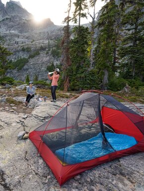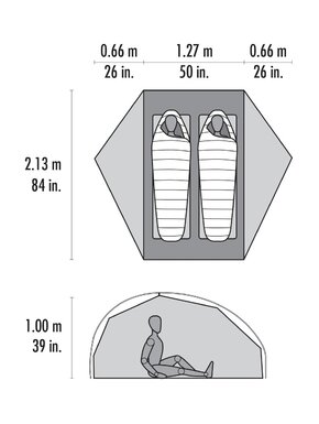 Намет має прямокутну підлогу без звуження в ногах і висоту 100 см, що забезпечує достатній внутрішній простір. Два входи і два тамбури дозволяють зручно користуватися наметом удвох і розміщувати спорядження окремо. Двері тамбурів оснащені водостічними жолобами StayDry™, що зменшує потрапляння води всередину під час відкривання.