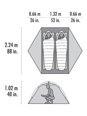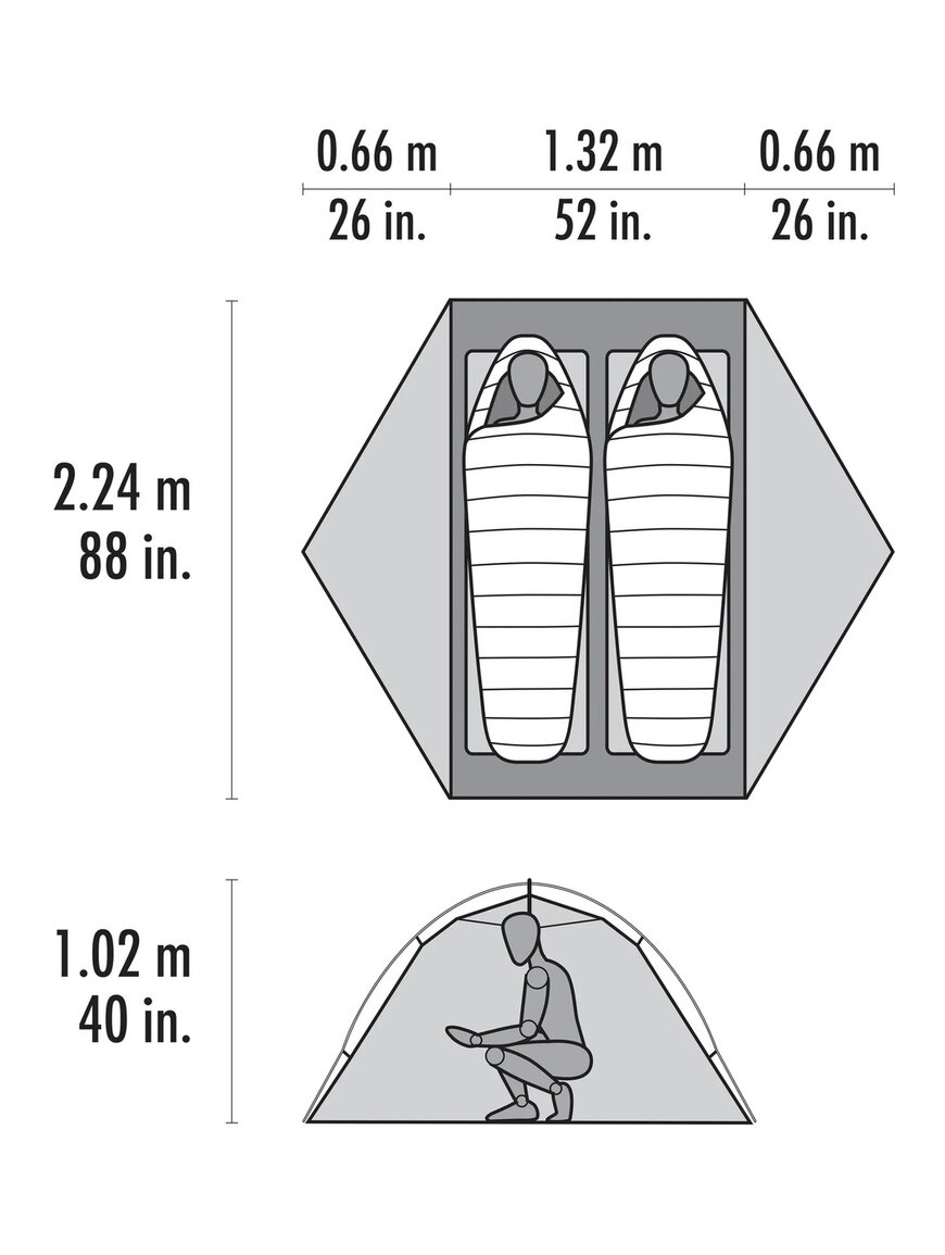 Внутрішній простір має правильну прямокутну форму, що дозволяє вільно розмістити два повнорозмірні килимки. Висота стелі 1,02 м та вертикальні стінки дають можливість вільно сидіти всередині, не торкаючись тенту головою. Намет обладнаний двома входами та двома місткими тамбурами, тож кожен матиме власний простір для спорядження та зручний вихід назовні.