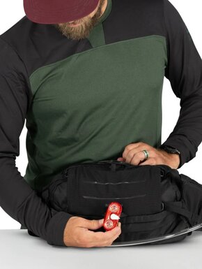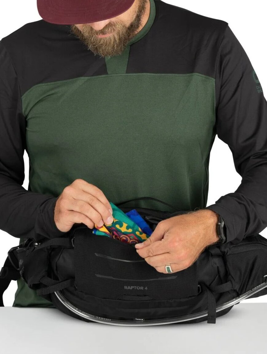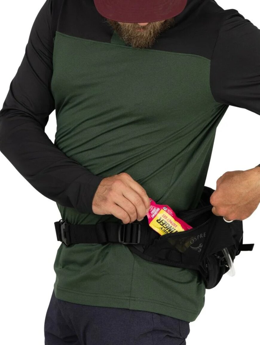 Модель оснащена вентильованою поперековою панеллю AirScape™, що забезпечує стабільність та комфорт навіть під час інтенсивного катання. Завдяки компресійним стропам та облягаючій конструкції сумка залишається на місці незалежно від рельєфу. Додаткові кишені на поясі дозволяють швидко дістати перекушування або дрібні речі, не зупиняючись. Продумане розташування відділень та власників допомагає тримати все необхідне під рукою. Міцні перероблені матеріали забезпечують довговічність та стійкість до активного використання.