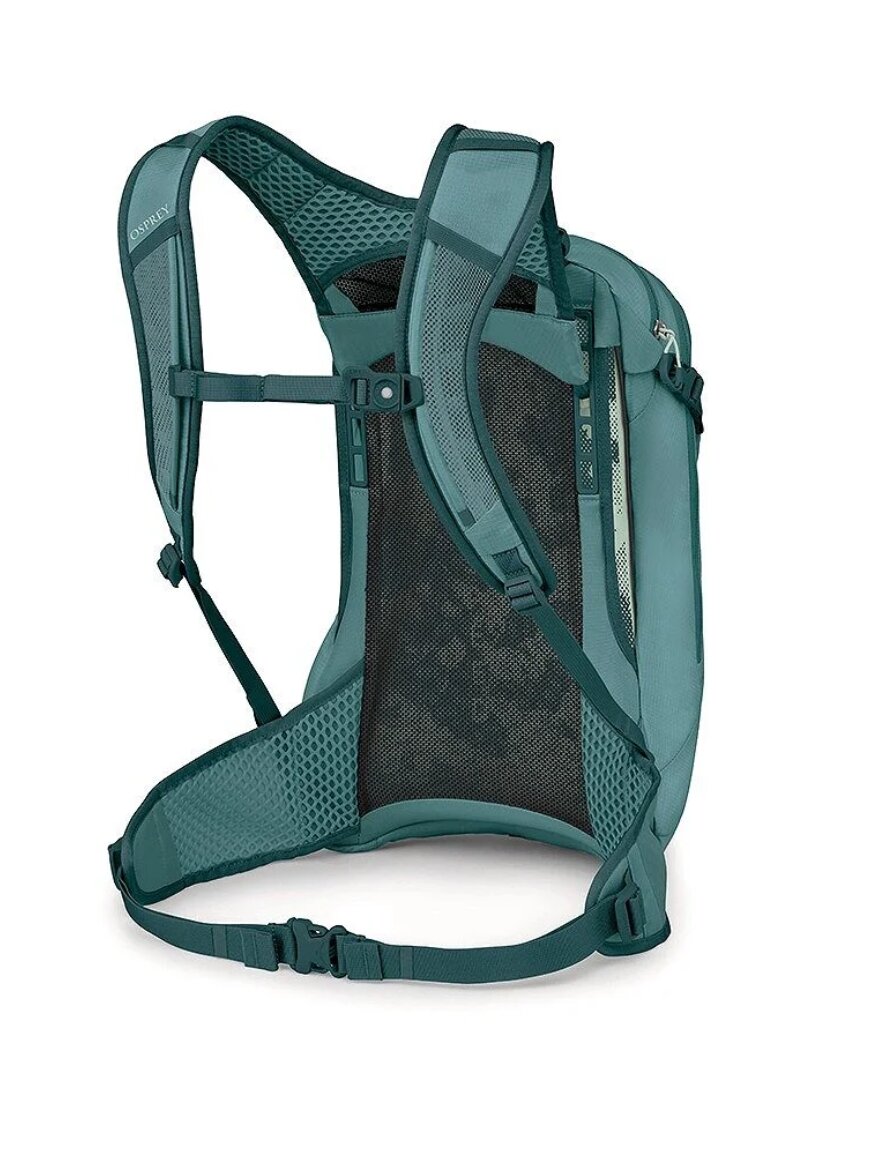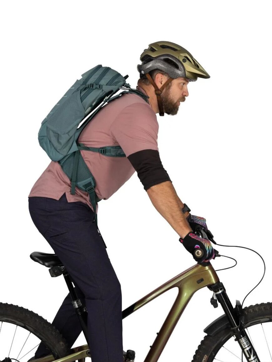 Модель оснащена вентильованою спинкою AirSpeed™, яка створює повітряний простір між рюкзаком та спиною, значно зменшуючи потовиділення під час навантаження. Ергономічні лямки та поясний ремінь забезпечують комфорт та рівномірний розподіл ваги навіть на довгих дистанціях. Інтегрований дощовик дозволяє не хвилюватися про погоду, а спеціальні кріплення додають практичності для спорядження, таких як шолом або ліхтар. Міцні матеріали з переробленого нейлону роблять рюкзак більш довговічним та екологічним. Завдяки поєднанню вентиляції, стабільності та функціональності, ця модель підходить не тільки для велосипеда, а й для активних хайкінг-маршрутів.