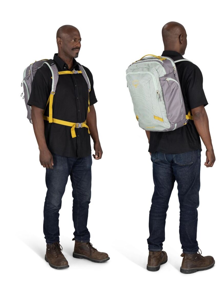 Рюкзак оснащений вентильованою спинкою AirScape™ та м'якими плечовими лямками, які при необхідності можна приховати для транспортування. Всередині передбачені різні відділення та органайзери, які допомагають зручно розподілити особисті речі, техніку та аксесуари. Окремий відсік м'який підходить для ноутбука, тому модель добре підходить і для ділових поїздок. Завдяки продуманим ручкам та спеціальної панелі для кріплення до валізи рюкзак легко використовувати в аеропортах та під час пересадок. Надійні матеріали з переробленого нейлону роблять його довговічним та екологічнішим варіантом для сучасних подорожей.