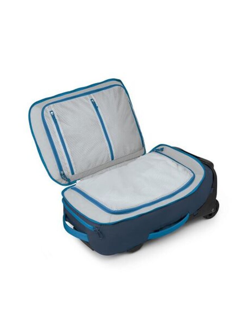 Зручна сумка на коліщатках для ручної поклажі об'ємом 38 літрів від Osprey. Сумка розроблена для максимального використання простору, дозволеного авіалініями. Багато внутрішніх кишень надійно захистять одяг та спорядження, а міцне шасі HighRoad з високим кліренсом і збільшені колеса дозволять вам без проблем подорожувати від пляжів до альпійських курортів.