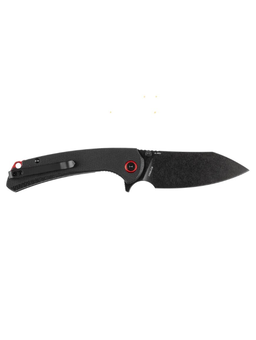 Клинок ножа має велику ширину та високі прямі спуски, володіючи, відповідно, гарними ріжучими та колючими якостями, тому добре підійде для EDC використання.