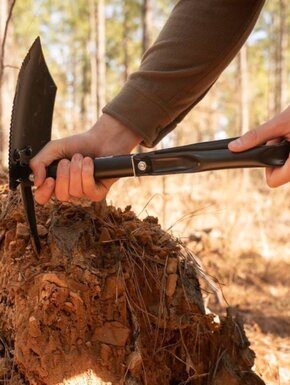 Лопата стане незамінним помічником у поході, на рибалці, полюванні чи під час кемпінгу. Зубчасте лезо дозволяє розчищати зарості та рубати дрібні гілки дерев для облаштування місця табору. Використовуйте пік для розбивки твердого ґрунту або льоду за потреби. Інструмент поставляється разом із міцним чохлом із балістичного нейлону для безпечного транспортування та зберігання.