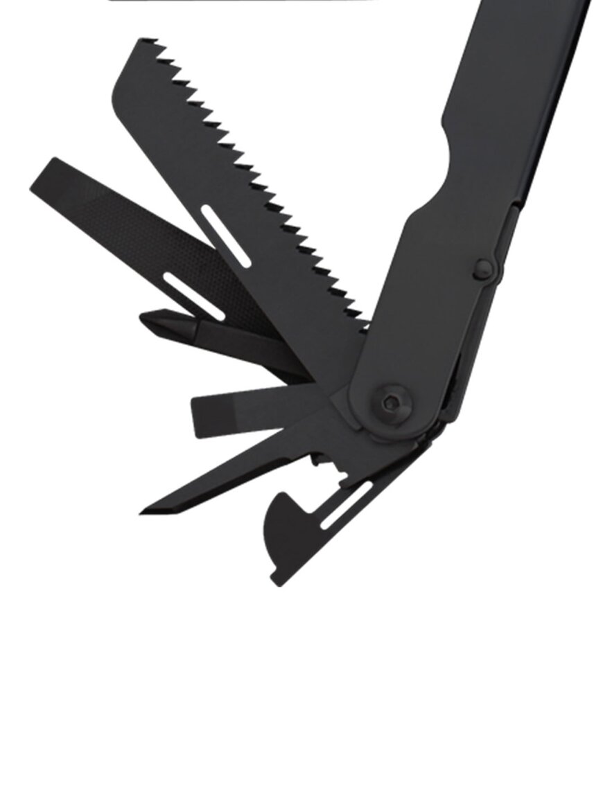 Мультитул має близько 18 інструментів, серед яких плоскогубці, інструмент для дроту та вибухових капсул, пилку, частково серейторний ніж, викрутки різних типів, шило, лінійка, відкривачки та інше для широкого спектра завдань. Завдяки замкам на кожному інструменті можна зафіксувати їх у відкритому положенні, що підвищує безпеку та зручність під час роботи. У комплекті йде чохол з нейлону, що дозволяє зручно носити мультитул на поясі чи сумці під час подорожей, чи тактичних операцій.