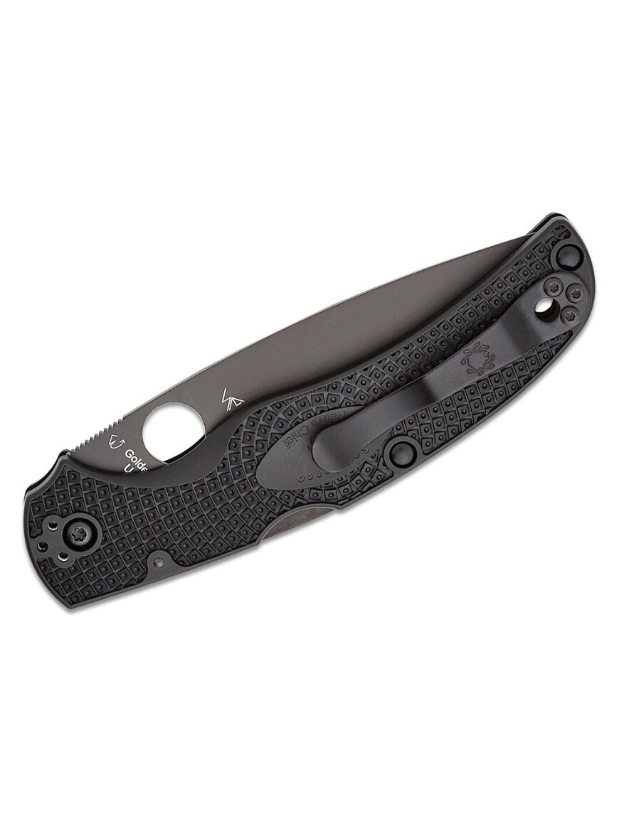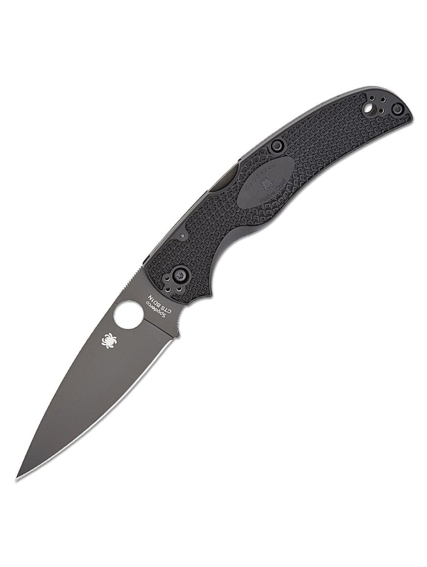 Універсальний складаний ніж від Spyderco, що є подовженою версією легендарної серії Native, поєднуючи класичний дизайн з підвищеною довжиною для кращого різання та універсального використання. Він оснащений клинком із сталі CTS-BD1N із чорним DLC-покриттям, що забезпечує високу корозійну стійкість, мінімальний відблиск та тривалу гостроту леза. Традиційний механізм Back Lock надійно фіксує клинок у відкритому положенні, що підвищує безпеку та стабільність під час роботи.