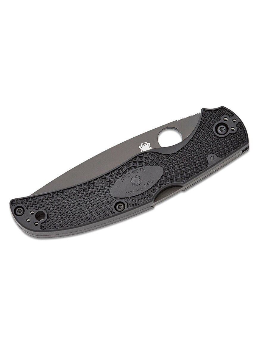 Ергономічна рукоятка з FRN (армований нейлон) легка, міцна та має текстуру для впевненого хвату. Великий круглий отвір Spyderco дозволяє швидко відкривати ножа однією рукою, а чотирипозиційна кишенькова кліпса дозволяє зручно носити його в кишені в різних орієнтаціях. Цей ніж ідеально підходить для повсякденного носіння (EDC), туризму та різних побутових чи тактичних завдань завдяки продуманому дизайну та якісним матеріалам.