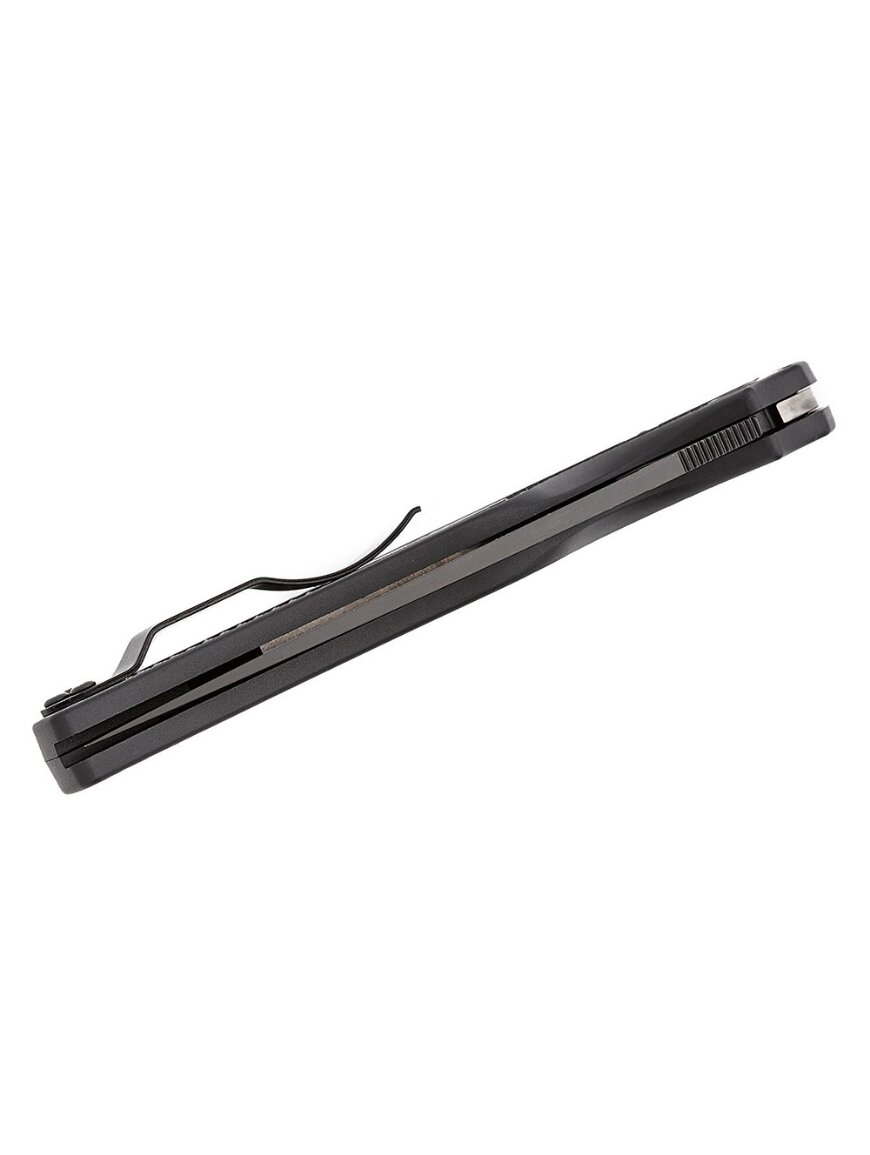- клинок із сталі CTS-BD1N із чорним DLC-покриттям для стійкості до корозії та зменшення відблисків