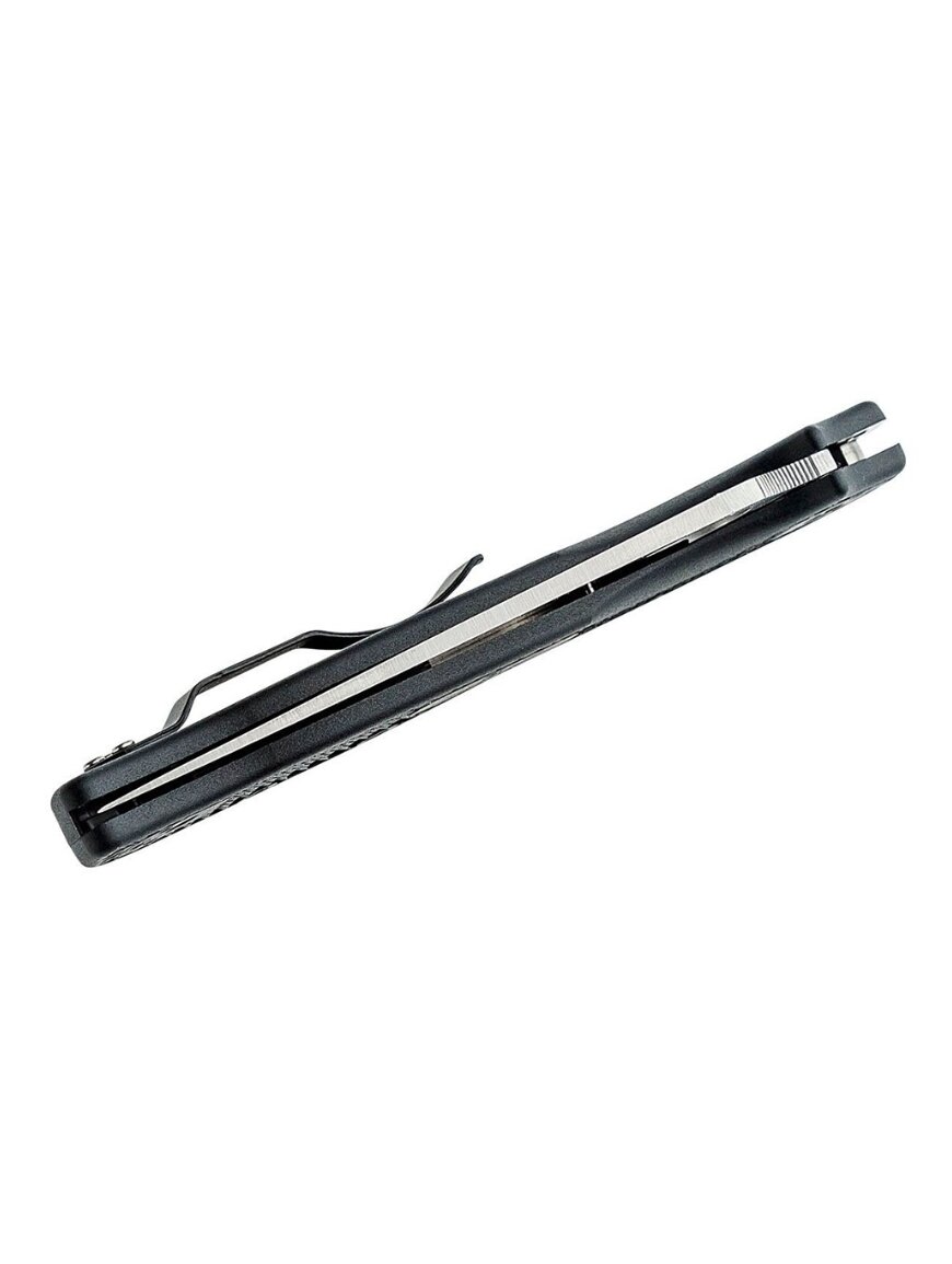 Легке руків'я з армованого скловолокном нейлону (FRN) з текстурою гарантує міцний хват та зменшує загальну вагу ножа, при цьому ніж зберігає високу витривалість. Замок Back Lock забезпечує надійну фіксацію клинка під час використання, а фірмовий круглий отвір під великий палець дозволяє легко відкривати ніж однією рукою. Чотирьохпозиційна кишенькова кліпса робить носіння зручним, дозволяючи носити ніж у різних орієнтаціях відповідно до переваг