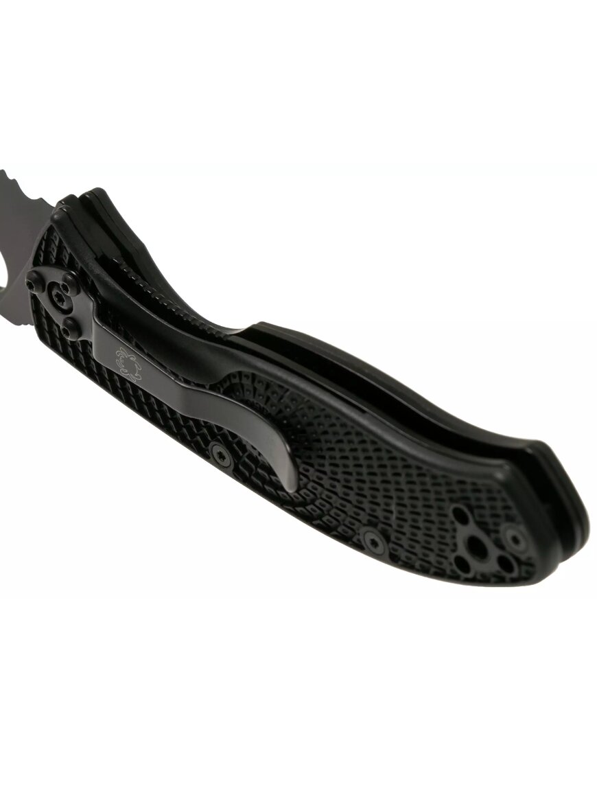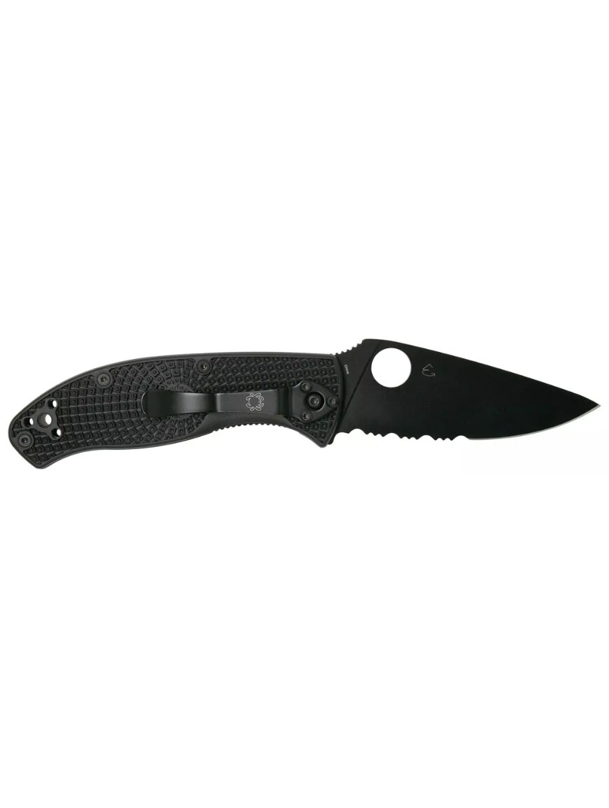 Складаний ніж від Spyderco – це поєднання практичності, надійності та сучасного дизайну для щоденного використання. Клинок чорного кольору з покриттям DLC, ріжуча кромка – комбінована, напівсерейторна. Полегшена конструкція робить його зручним у носінні, не перевантажуючи кишеню чи спорядження. Лезо має універсальну форму і добре підходить як для точних, так і грубіших робіт. Завдяки продуманій ергономіці ніж забезпечує комфортне використання протягом тривалого часу.