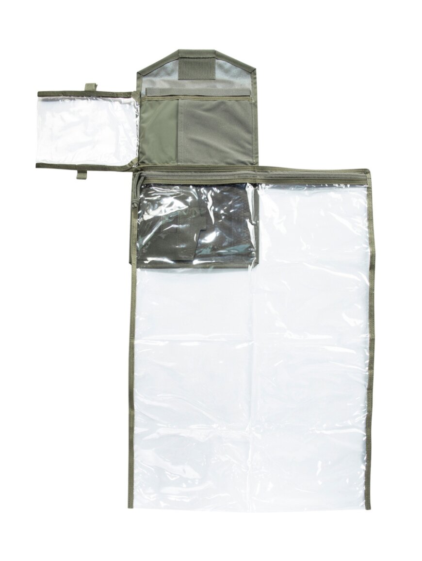 Функціональний органайзер для карт та документів, призначений для тактичного використання, навігації та роботи в польових умовах. Чохол дозволяє зручно зберігати великі карти, записи та аксесуари, забезпечуючи швидкий доступ до важливої інформації. Завдяки складній конструкції чохол легко відкривається і дає повний огляд вмісту, що особливо зручно під час планування маршруту або роботи з навігацією. Наявність прозорих відділень дозволяє працювати з карткою навіть не дістаючи її. Це практичне рішення для військових, туристів та всіх, хто працює з паперовими картами.