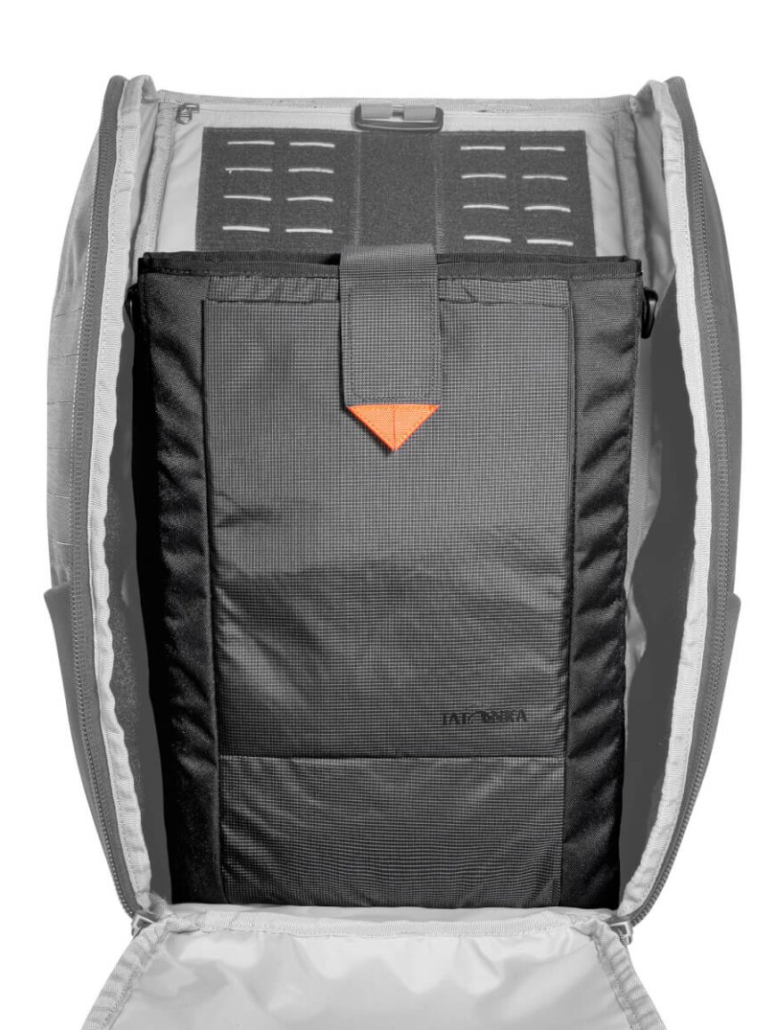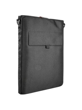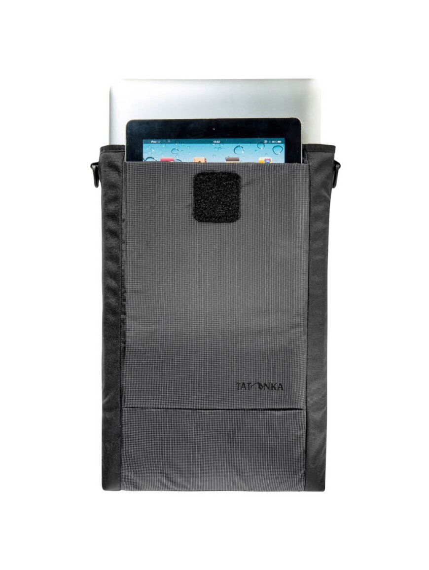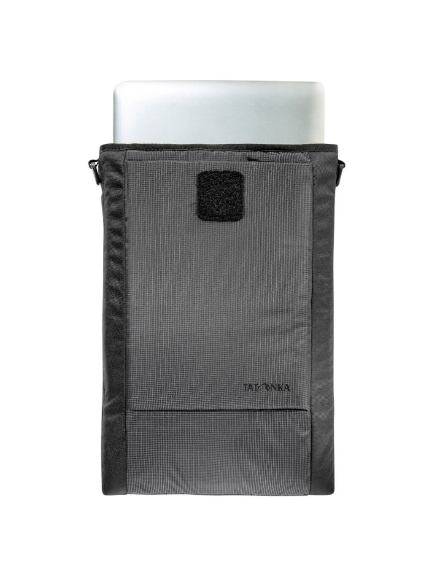 Чохол виготовлений із міцних матеріалів з водо- та брудовідштовхувальним покриттям без шкідливих PFC/PFAS з'єднань, що підвищує довговічність та екологічність виробу. Внутрішня частина чохла має м'яке наповнення, що забезпечує надійний захист техніки від ударів і подряпин. Задня сторона має приховану панель-липучку, що дозволяє легко закріпити чохол у рюкзаках із відповідною системою фіксації, наприклад, у Tatonka EDC Pack 30 BC.