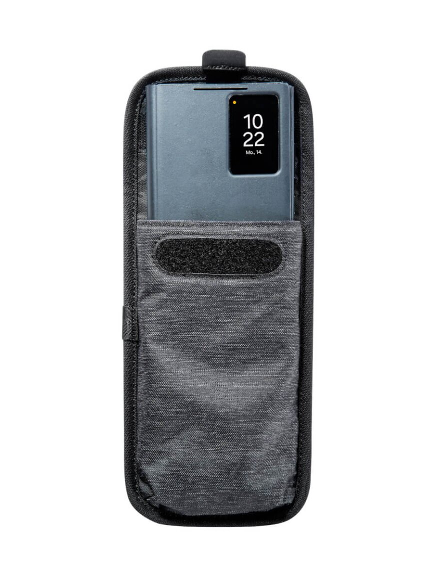 Матеріал виготовлений із міцних тканин із частковим використанням перероблених волокон, що підвищує зносостійкість та довговічність виробу. Додатково чохол має водо- та брудовідштовхувальне просочення без PFC/PFAS, що робить його безпечнішим для навколишнього середовища. Конструкція забезпечує надійне зберігання смартфона та зручність використання у різних умовах. Такий формат підходить як для міського використання, так і для подорожей чи outdoor активностей.