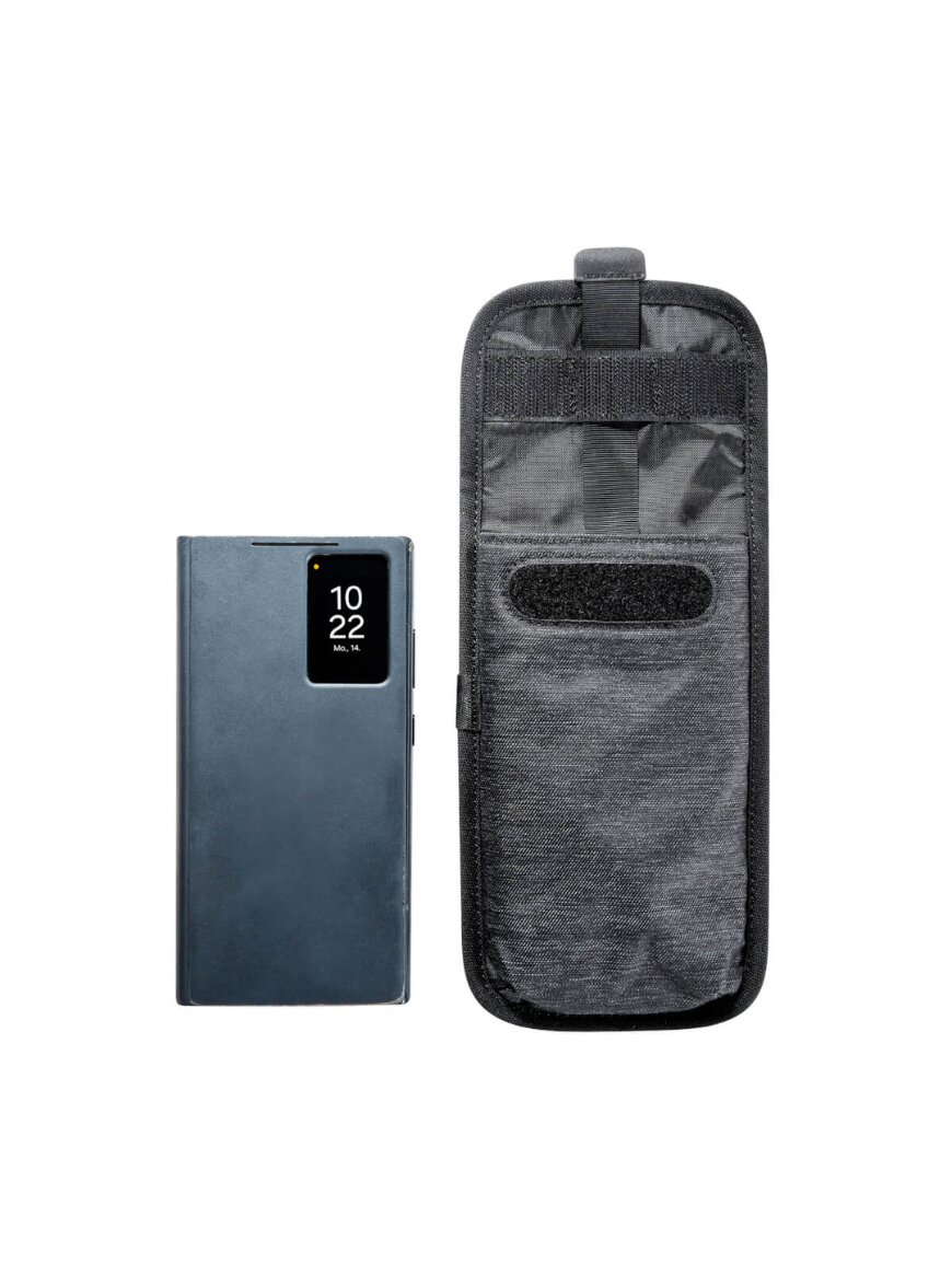 Чохол для смартфона збільшеного розміру призначений для надійного захисту пристрою під час повсякденного використання чи активного відпочинку. Він оснащений плоскою петлею на обороті, що дозволяє кріпити його до ременя як у вертикальному, так і горизонтальному положенні. Конструкція ефективно захищає смартфон від ударів та пошкоджень. Завдяки застібці на липучці та витяжному шнурку пристрій легко діставати з чохла.