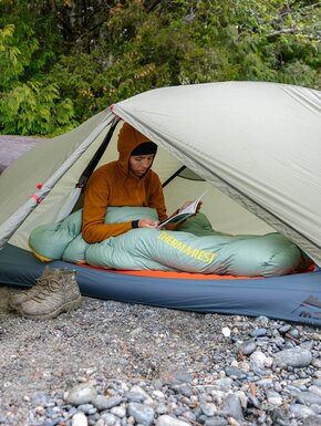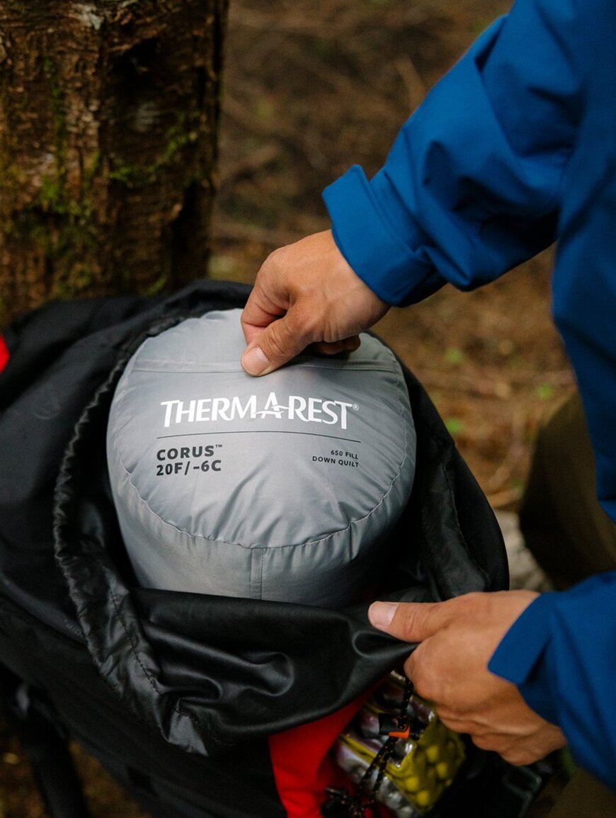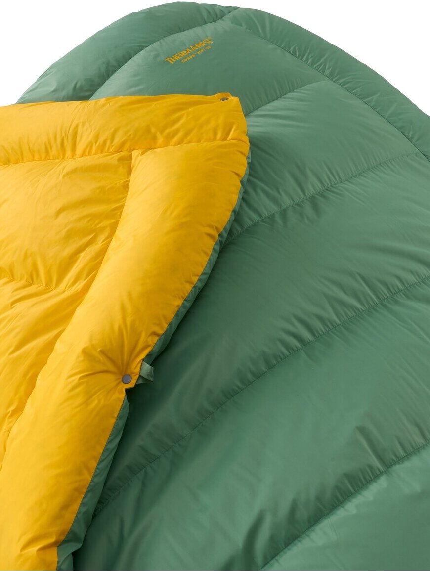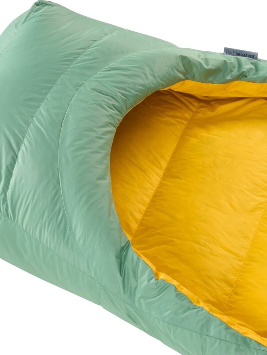 THERM-A-REST Corus -6C Quilt Large — легкий пуховий квілт для трисезонних походів і використання разом із килимком. Формат квілта дозволяє зменшити вагу спорядження і дає більше свободи рухів під час сну порівняно зі спальником. Версія Large має довжину 211 см і підходить для користувачів зростом до 198 см. Температурний режим: комфорт 0°C, ліміт -6°C.