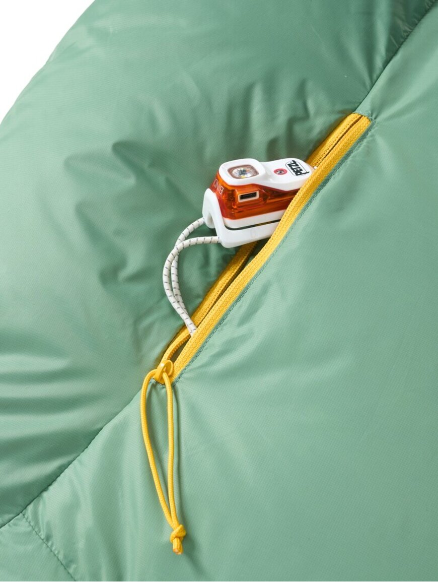В основі — качиний пух 650-fill Nikwax Hydrophobic Down™. Завдяки спеціальній обробці він майже не вбирає вологу та сохне втричі швидше за звичайний пух. Це дозволяє квілту ефективно тримати тепло навіть у сирому кліматі. Конструкція Box Baffled (коробчасті перегородки) утримує пух рівномірно в камерах і запобігає утворенню холодних зон.