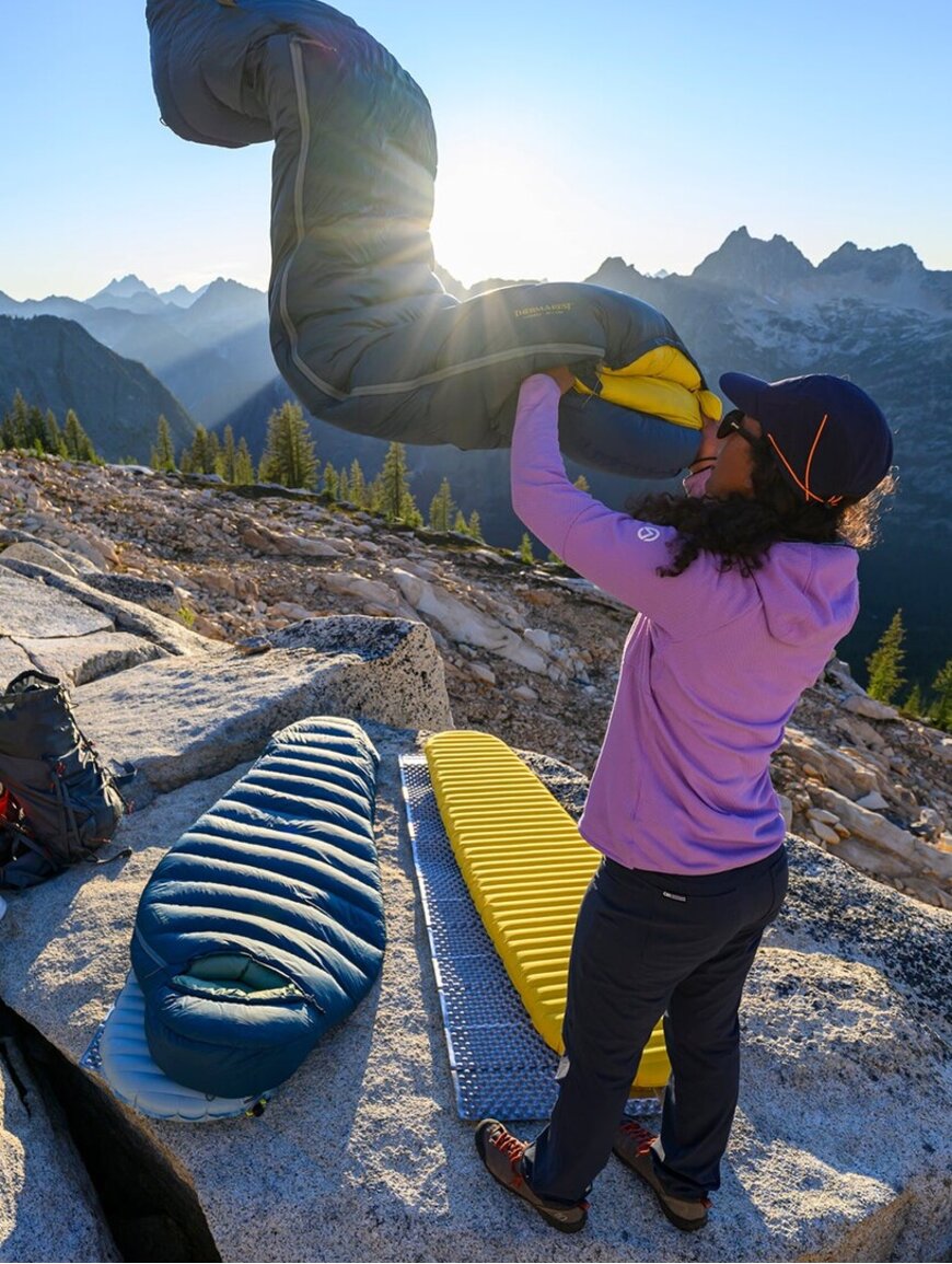 Зовнішня тканина та підкладка виготовлені зі 100% переробленого нейлону, що робить виріб екологічним та зносостійким. Блискавка YKK зі спеціальним захистом від заїдання запобігає пошкодженню тканини, а внутрішня кишеня дозволяє тримати телефон або акумулятори в теплі, зберігаючи їхній заряд на морозі. Зовнішні петлі дають змогу кріпити поверх спальника квілти або ковдри Therm-a-Rest для створення надпотужних модульних систем у екстремальні холоди.