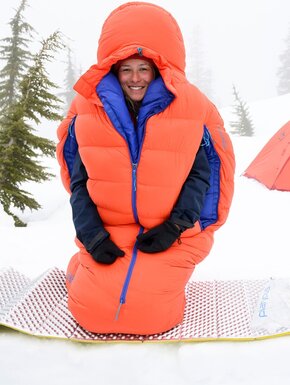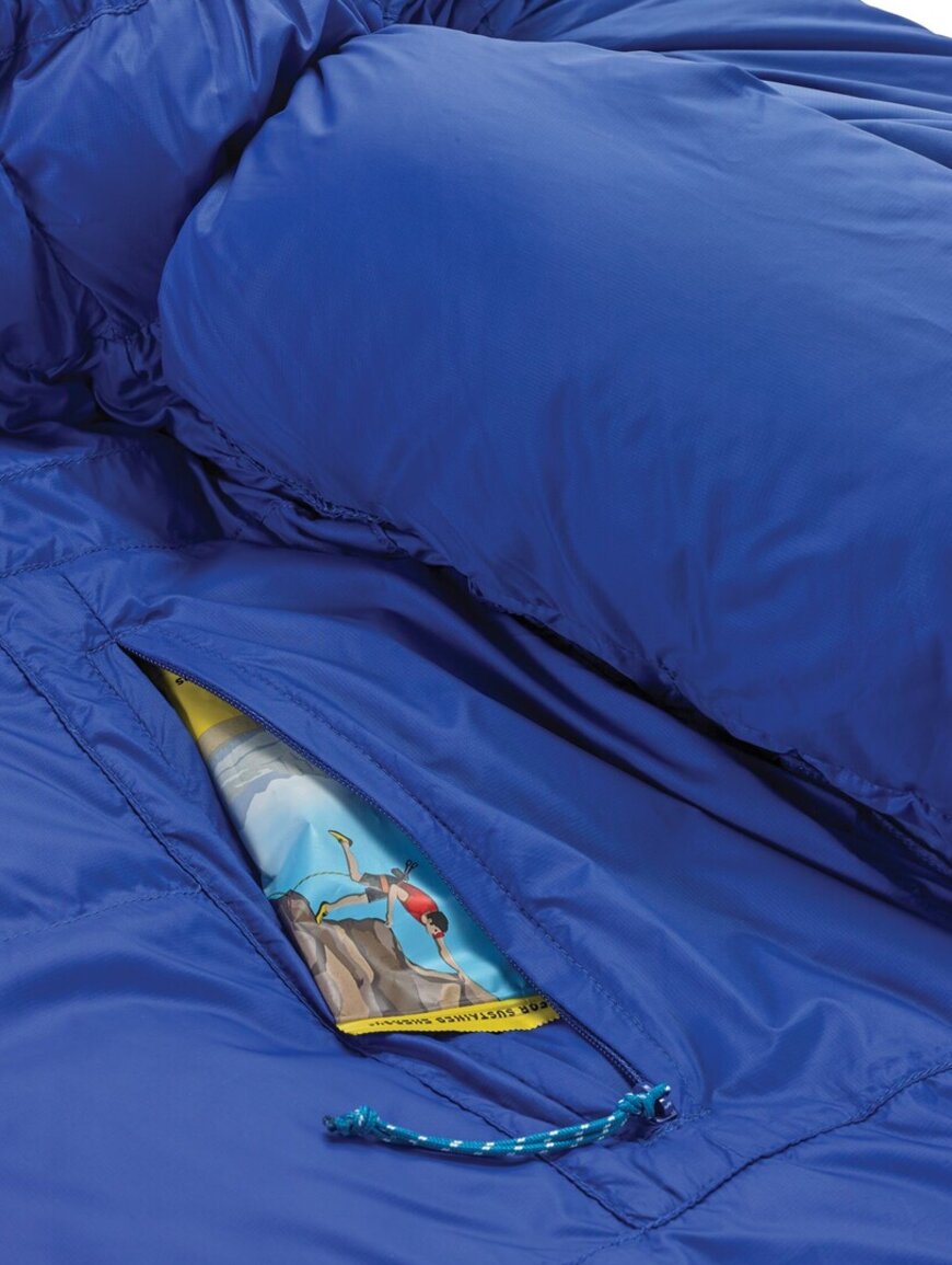 Утеплювачем слугує преміальний пух 800-fill Nikwax Hydrophobic Down™. Завдяки гідрофобній обробці він майже не вбирає вологу та зберігає свої властивості навіть під час тривалих походів, коли в наметі накопичується іній та конденсат. Конструкція Box Baffled рівномірно розподіляє утеплювач і зменшує ризик утворення холодних зон. Температурний режим: комфорт -20°C, ліміт -30°C.