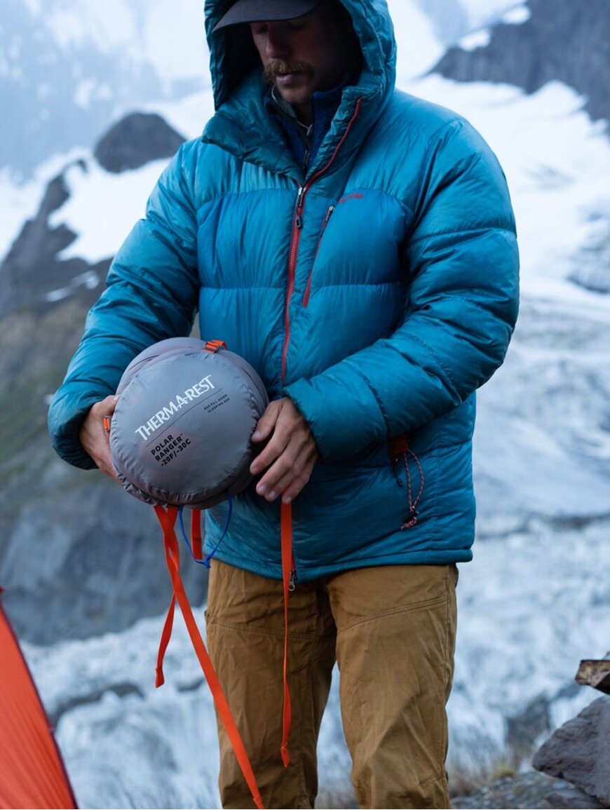 THERM-A-REST Polar Ranger -30C Long — експедиційний пуховий спальник для використання в екстремально холодних умовах. Модель розроблена у співпраці з полярним дослідником Еріком Ларсеном і призначена для тривалого перебування на морозі. Версія Long підходить для користувачів зростом до 198 см.