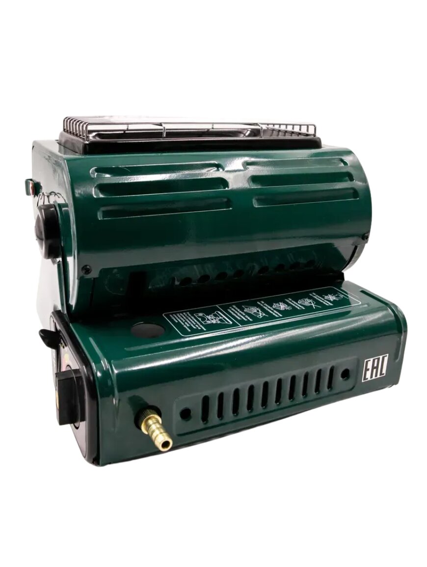 Портативний газовий обігрівач від Tramp з керамічним нагрівальним елементом. Обладнаний зйомною решіткою таганком над керамічним обігрівальним елементом за рахунок чого може використовуватися як плита для приготування їжі. Надійне, ефективне та безпечне рішення для обігріву наметів, вуличних наметів, автотрейлерів, павільйонів або невеликих приміщень дачного типу.