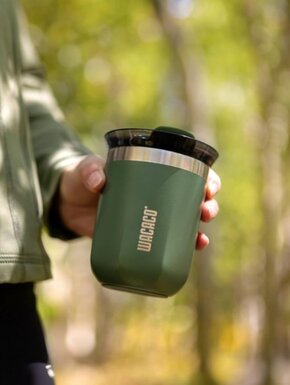Термогорнятко об'ємом 180 мл від Wacaco — це ідеальний спосіб насолодитися улюбленим напоєм на ходу, не жертвуючи місцем в рюкзаку або сумці під час транспортування. Завдяки цьому термогорнятку з вакуумною ізоляцією, ви можете брати з собою гарячу каву або холодний лимонад і бути впевненими, що температура напою збережеться на початковому рівні. Підтримує температуру напою теплою або холодною до 8 годин (залежить від початкової температури напою, температури навколишнього середовища та частоти відкривання кришки).