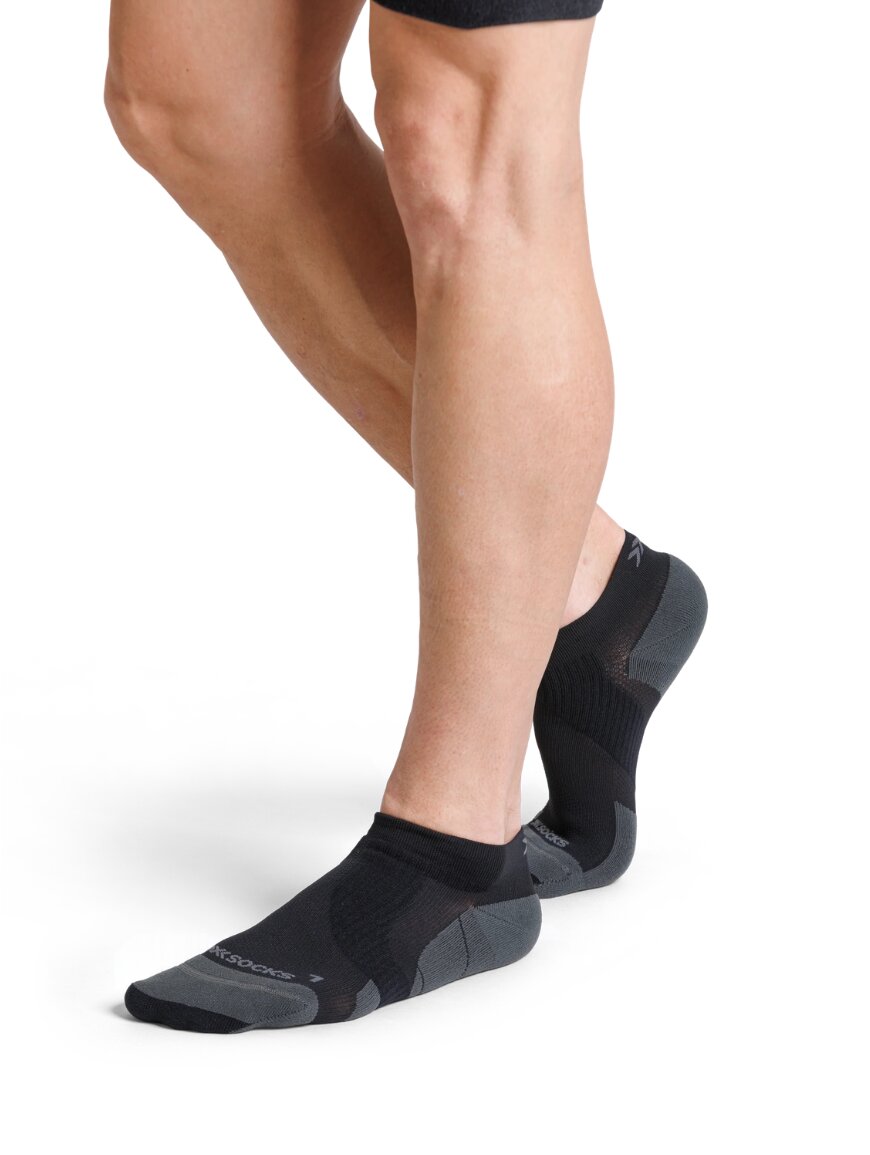 Короткі шкарпетки унісекс для бігу призначені для щоденних пробіжок та тренувань, забезпечуючи комфорт та ефективне відведення вологи. Вони мають анатомічну посадку, що гарантує точну фіксацію на стопі та мінімізує ризик ковзання всередині кросівок. Посилені зони на п'яті, носку та ахілловому сухожиллі забезпечують додатковий захист та зменшують тертя при активному русі. Завдяки вентиляційним каналам стопа залишається сухою та прохолодною навіть під час інтенсивних тренувань.