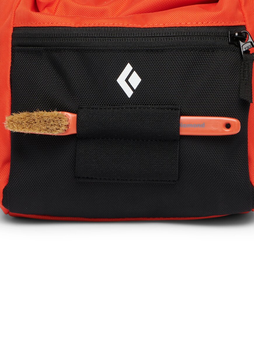 Модель оснащена магнитной системой закрытия и дополнительным roll-top механизмом, помогающим предотвращать сыпь магнезии во время транспортировки. Наличие карманов позволяет удобно хранить мелкие аксессуары, а держатели для щеток придают функциональность. Конструкция предназначена для активного использования как в зале, так и на скалах. Это практическое решение для тех, кто ценит стабильность, емкость и удобство.