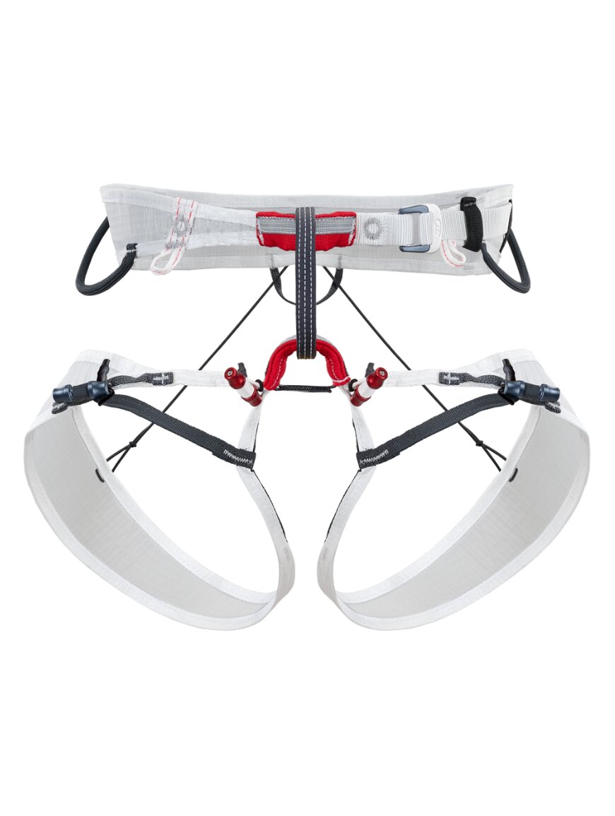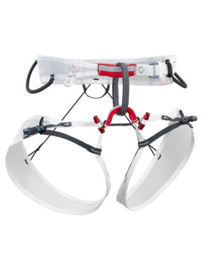 Инновационная модульная обвязка двойной конфигурации для ски-туринга и альпинизма. Легкая, водонепроницаемая, легко надевается даже с лыжами или кошками на ногах.