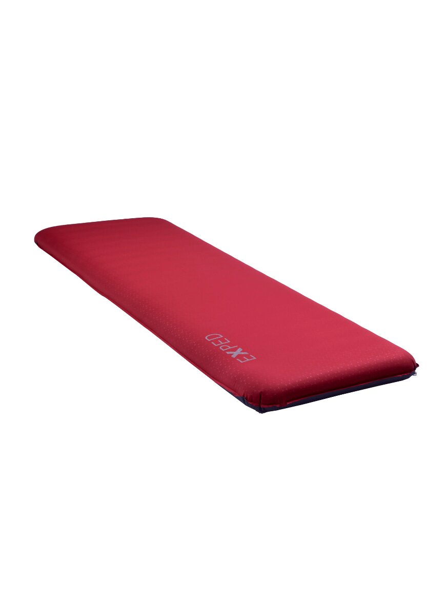 Самонадувающийся туристический коврик от Exped, предназначенный для кемпинга, базового лагеря, автомобильных путешествий или домашнего использования как дополнительное спальное место благодаря своей необычайной толщине и комфорту. Он имеет толщину около 10 см, что обеспечивает значительную мягкость и хорошую теплоизоляцию даже на холодной земле или неровных поверхностях.