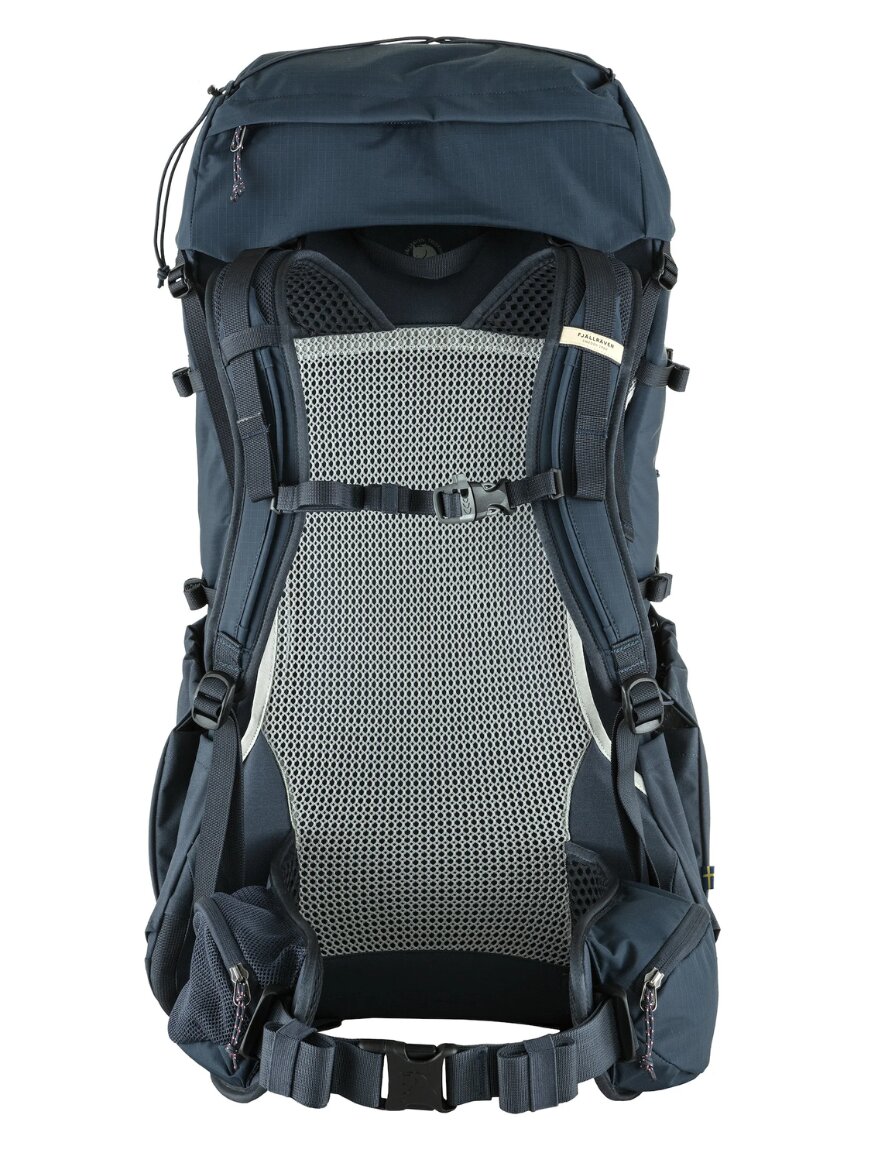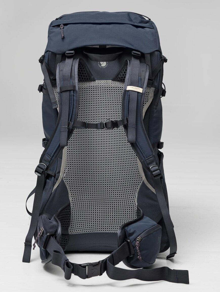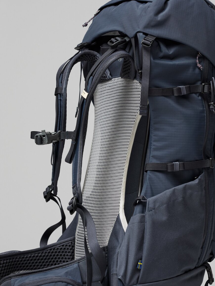 Рюкзак оснащен системой Friluft Ventilation System, которая обеспечивает отличную вентиляцию спины и комфорт даже при длительном ношении в жару. Эргономичные плечевые ремни и поддерживающий пояс с сетчатой подкладкой позволяют равномерно распределять нагрузку. Алюминиевая рамка и сетчатая спинка обеспечивают стабильность и свободу движения воздуха.